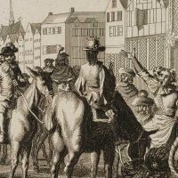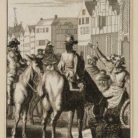Caspar Luyken (1672 – 1708 ), Illustration to Francisco de Quervedo’s picaresque novel Historia de la vida del Buscón or Historia del gran Tacaño, Buscon becomes king of the student body, 1699, Etching