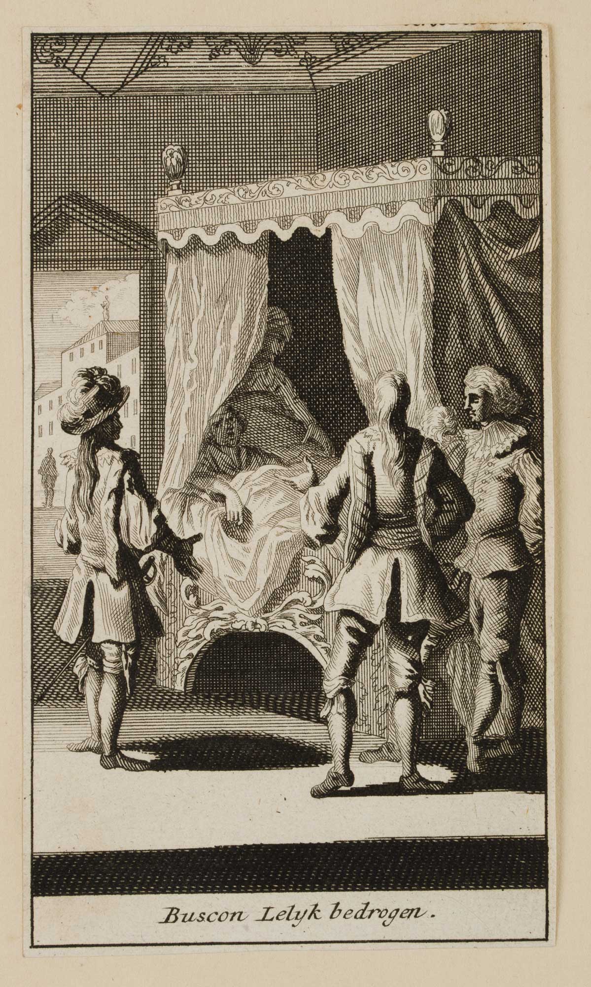Caspar Luyken (1672 – 1708 ), Illustration zu Francisco de Quervedos Schelmenroman Historia de la vida del Buscón oder Historia del gran Tacaño, Buscon unschön betrogen, 1699, Radierung