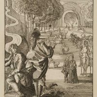 Caspar Luyken (1672 – 1708 ), Illustration zu Francisco de Quervedos Schelmenroman Historia de la vida del Buscón oder Historia del gran Tacaño, Der Hölle entronnen, 1699, Radierung