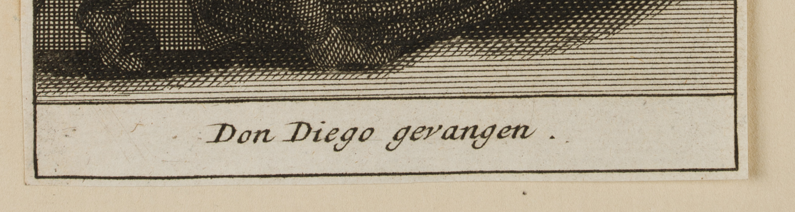 Caspar Luyken (1672 – 1708 ), Illustration zu Francisco de Quervedos Schelmenroman Historia de la vida del Buscón oder Historia del gran Tacaño, Don Diego gefangen, Entführer bei Kerzenschein, 1699, Radierung