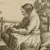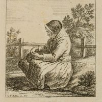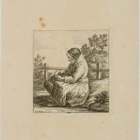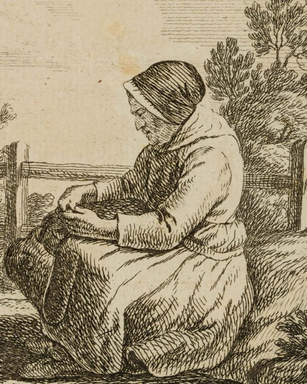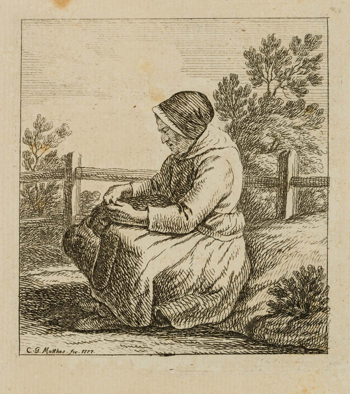 Christian Gottfried Mathes (1738 Berlin – around 1805 ibid.), Farmer’s wife, sitting by the wayside, 1777, Etching