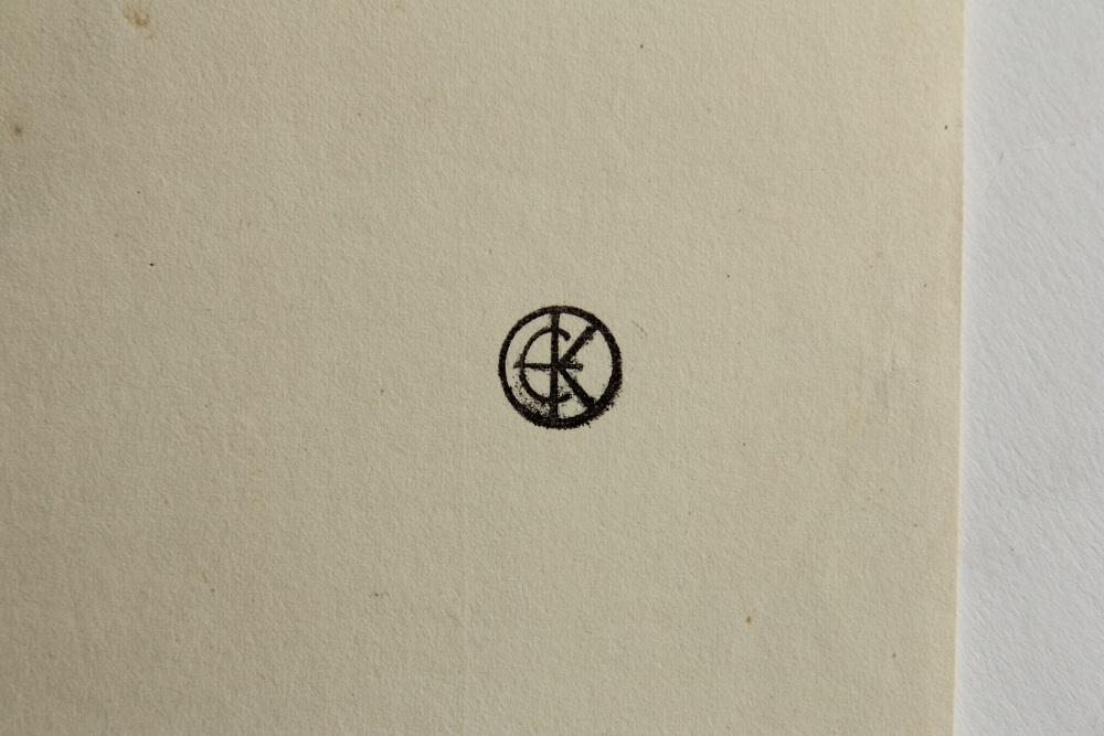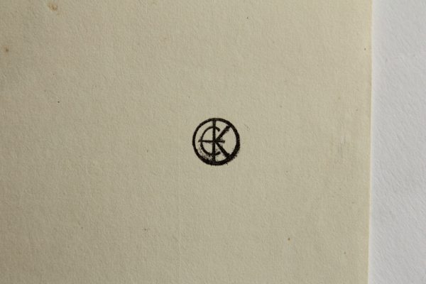 - Inscription: Signed in printing plate below the depiction and inscribed with the sitter’s name. On the reverse is a collection stamp with the monogram “EK”.