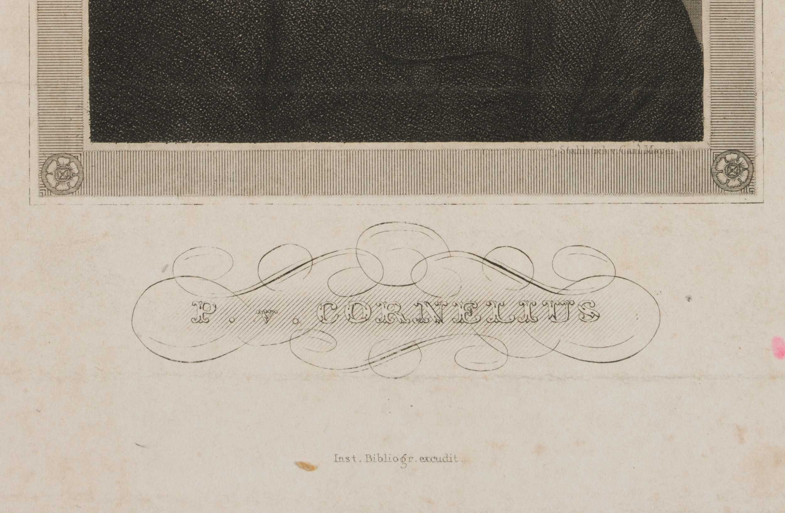- Bezeichnung: Unten rechts im Druck signiert: “Stahlstich v. Carl Mayer”.