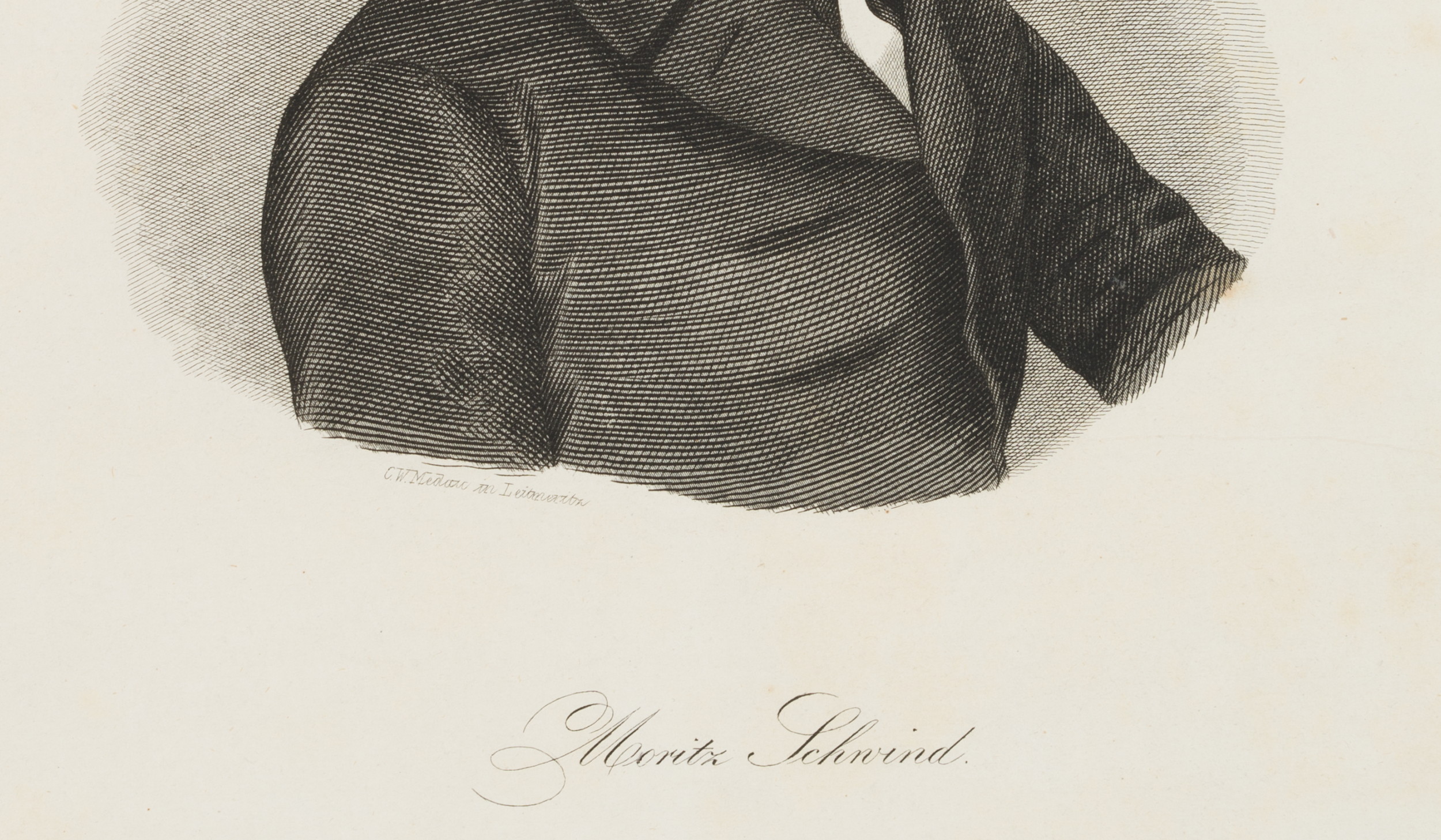 - Inscription: lower left signed in the printing plate: “C. W. Medau in Leitneritz”. Lower middle inscribed in the printing plate: “Moritz Schwind”.