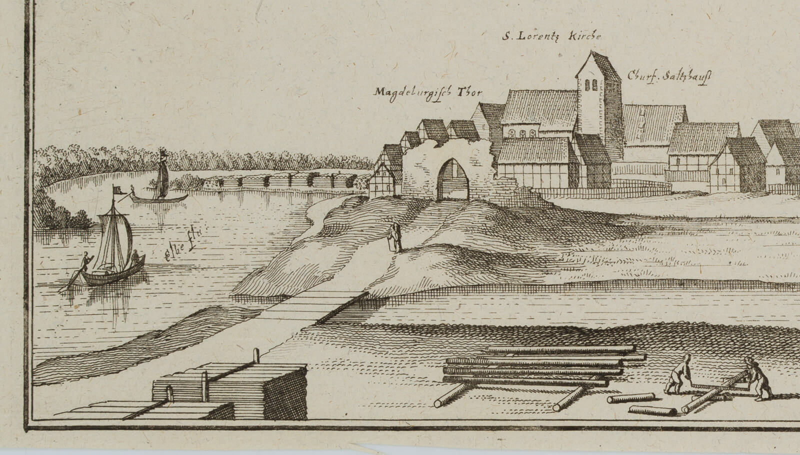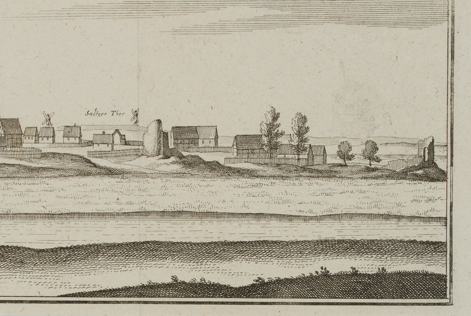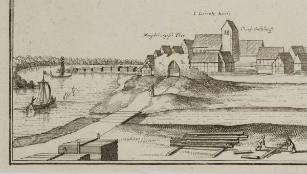 Caspar Merian (1627 Frankfurt am Main – 1686 Schloss Waltha, Westfriesland), Frohse Schönebeck Elbe Salzlandkreis Sachsen-Anhalt, um 1650, Radierung