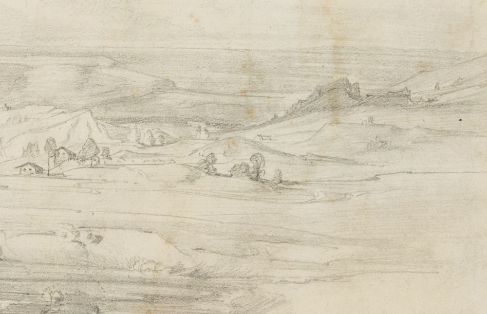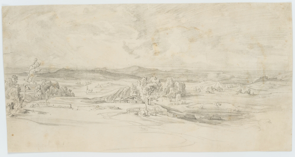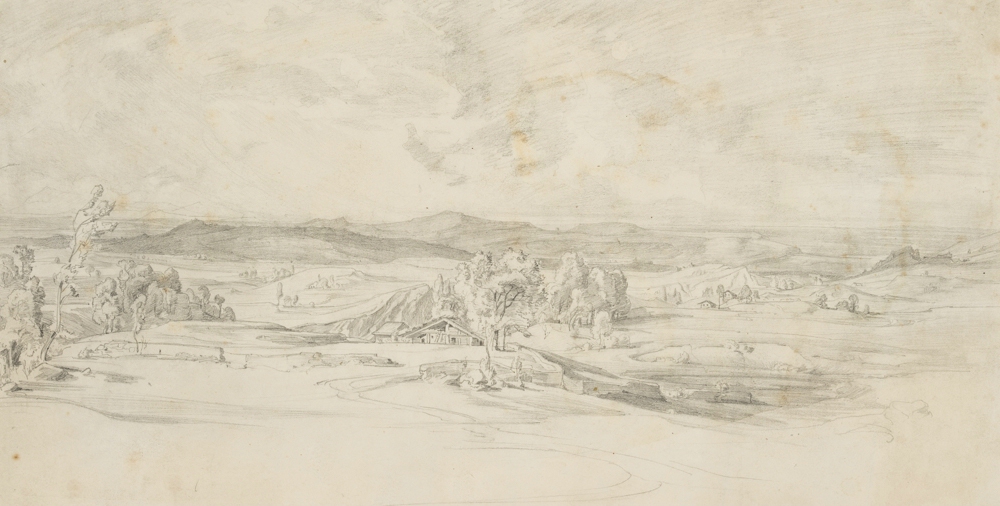 Cäsar Metz (1823 Mainz – 1895 München), Landschaft im Voralpenland, 19. Jahrhundert, Bleistift