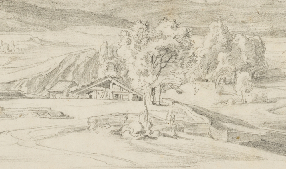 Cäsar Metz (1823 Mainz – 1895 Munich), Landscape in the Alpine foothills, 19th century, Pencil