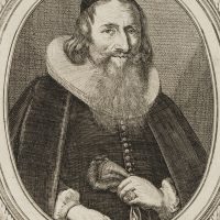 - Beschreibung: Bruststück im Oval mit Rauschebart, schwarzem Mantel, Weste und Mühlsteinkragen. Seine rechte Hand reicht aus dem Rahmen heraus.