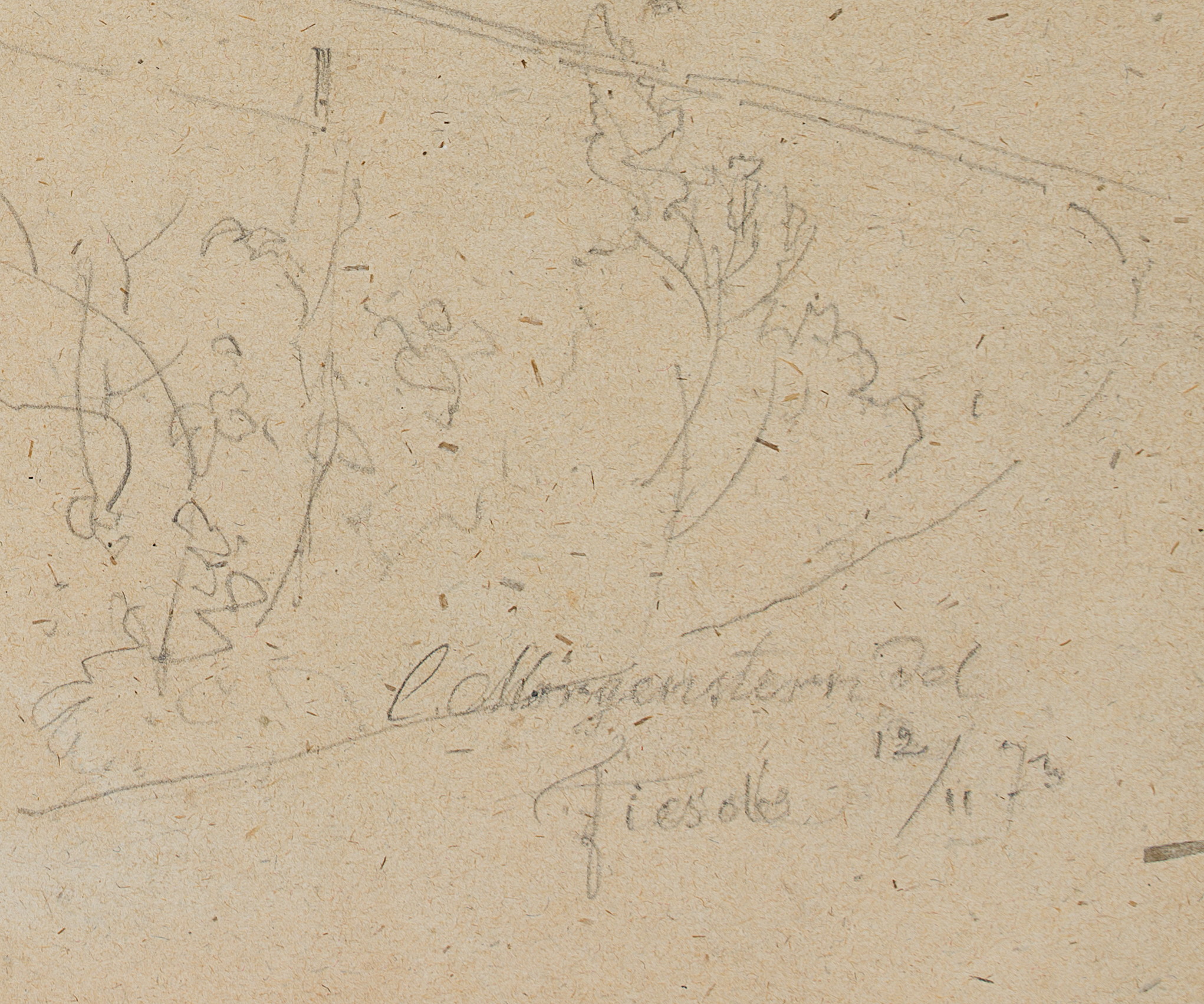 - Bezeichnung: Unten rechts signiert: “C. Morgenstern del”. Unten rechts datiert: “FIesole 12/11 73”.