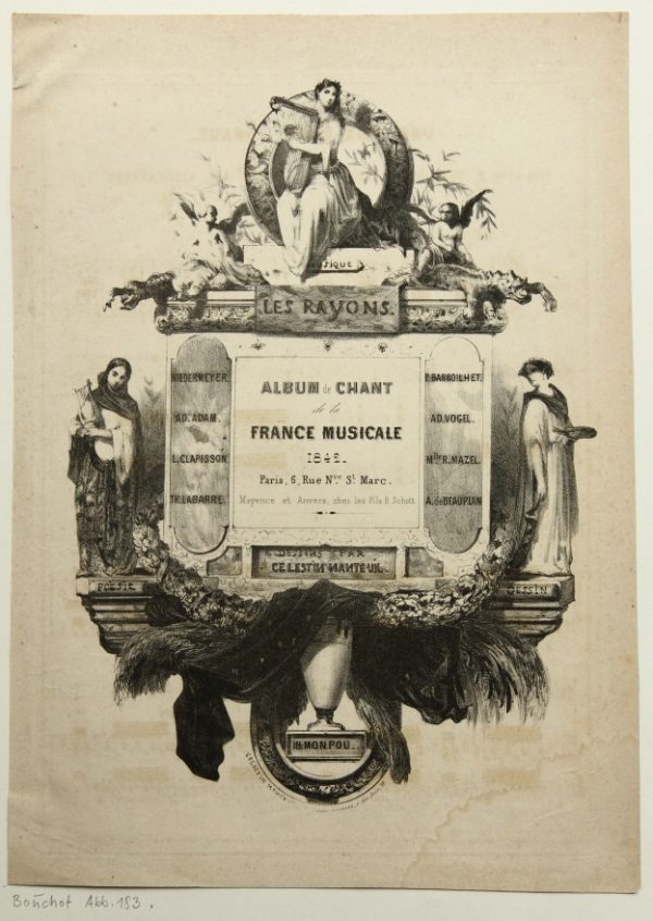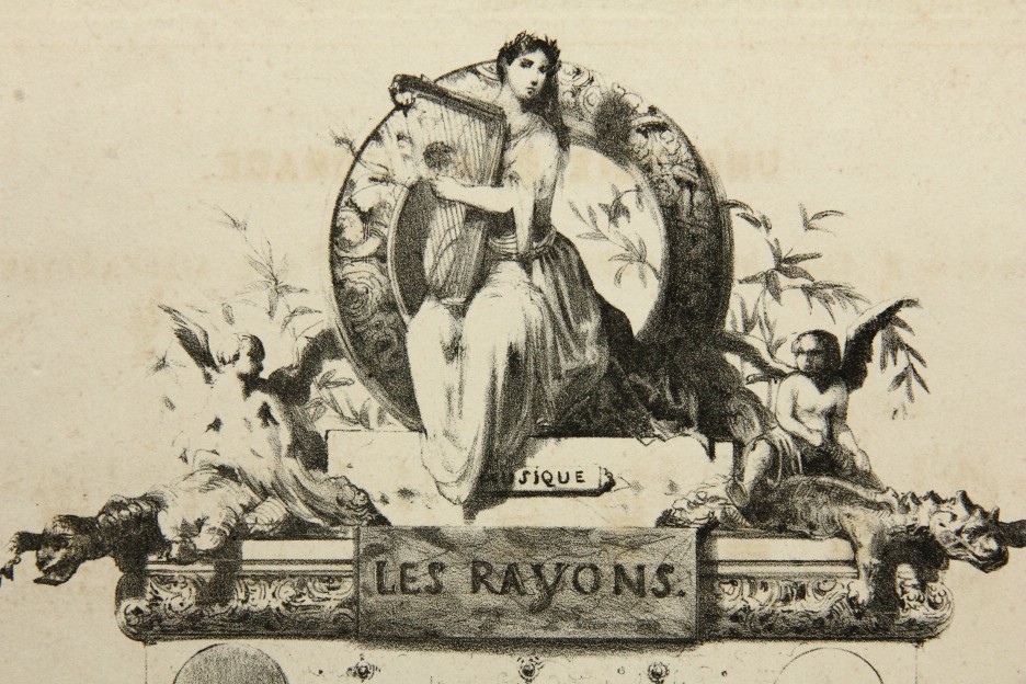 Célestin Nanteuil (1813 Rom – 1873 Bourron-Marlotte), “Les Rayons. Album de Chant de la France Musicale 1842”, Frontispiz , 1842, Lithographie