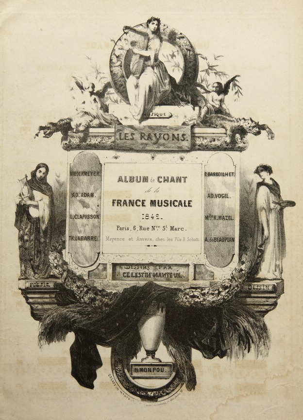 Célestin Nanteuil (1813 Rom – 1873 Bourron-Marlotte), “The Rays Album de Chant”, Frontispiz, 1842, Lithography