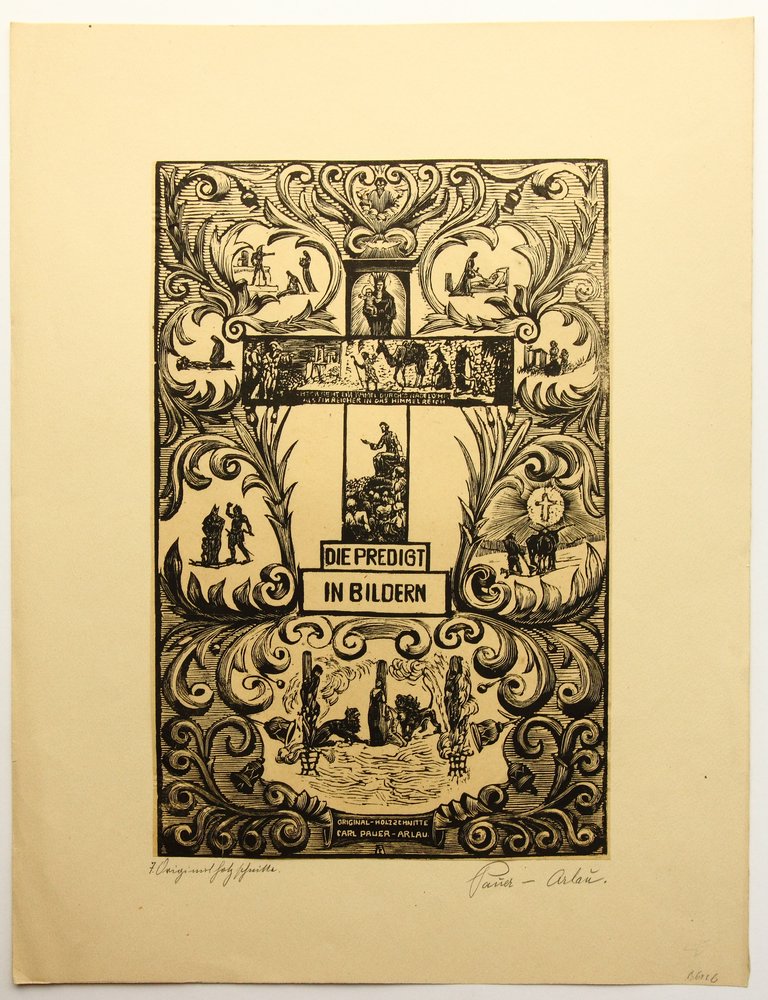 Carl Pauer-Arlau (1880 Mährisch-Weißkirchen – 1953 Graz), Die Predigt in Bildern, , Holzschnitt