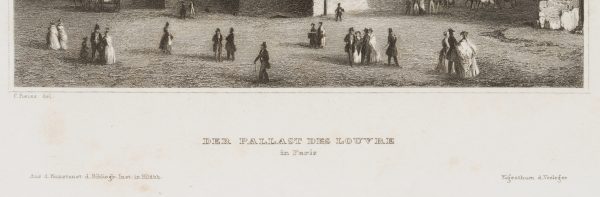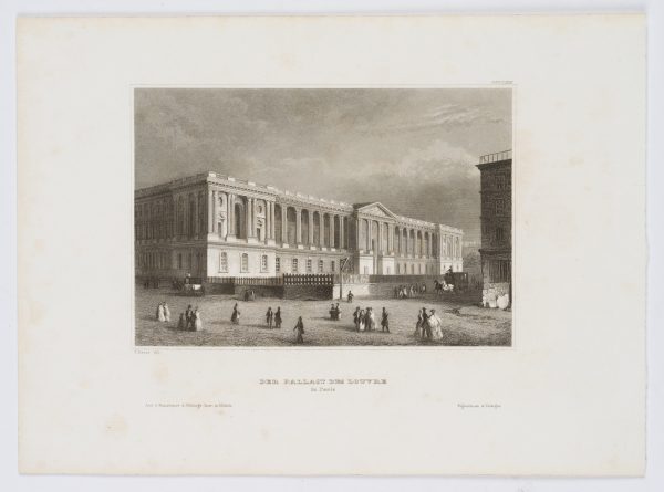 - Bezeichnung: Unten links im Druck signiert: “C. Reiss del.”. Unten im Druck bezeichnet: “Der Pallast des Louvre in Paris”.