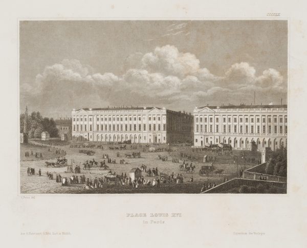 - Inscription: lower left signed in the printing plate: “C. Reiss del.”. At the lower part inscribed in the printing plate: “Place Louis XVI in Paris”.