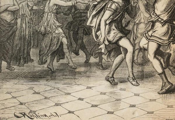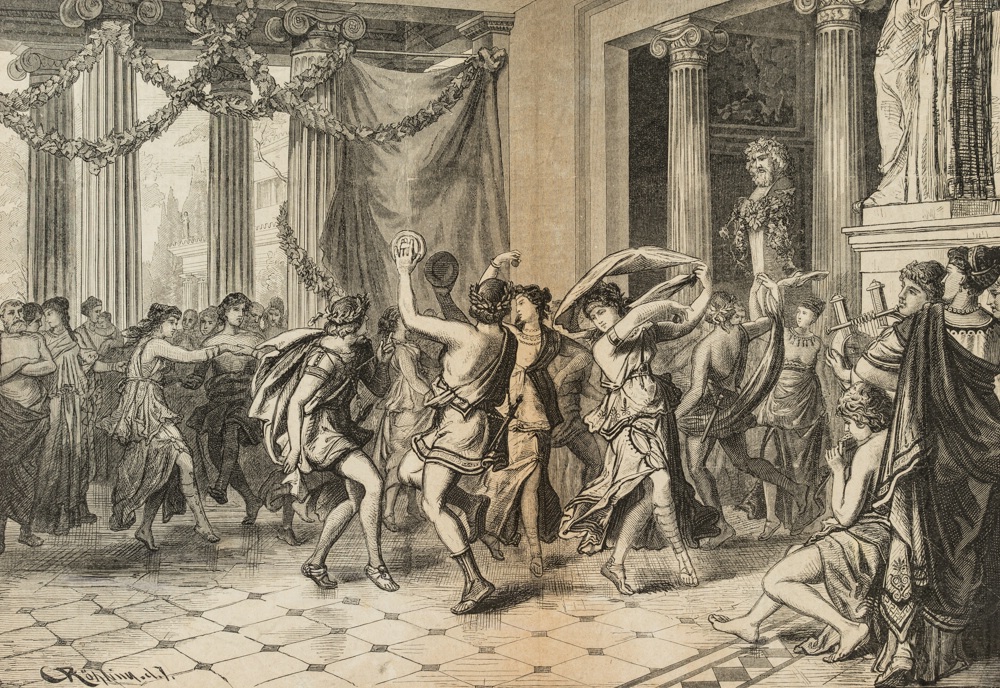 Carl Röhling (1849 – 1922 ), Dance among the ancient Greeks, 1874, Wood engraving