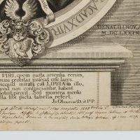 • Description: Name of the sitter in the written oval. 6-line inscription in Latin of “Jo. Olearius D. et PP” on the base.