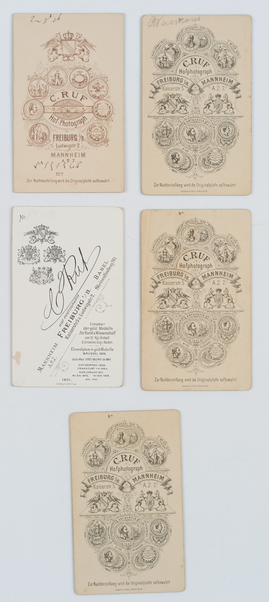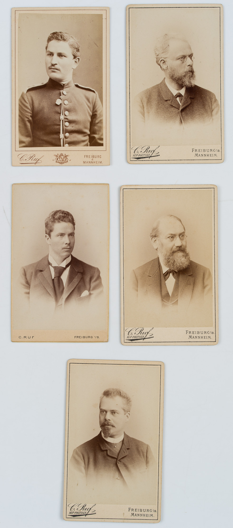 Conrad Ruf (1840 Breitnau – 1922 Freiburg im Breisgau), 5 Business Cards. Herrenportraits, 19th century, CDV