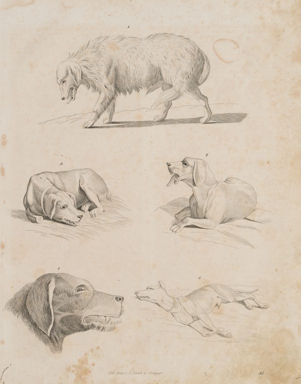 - Schlagworte: Hund, Krankheit, Krankheitsbild, Krankheitsverlauf, Tollwut, Rabies, Hundswut, Wutkrankheit, rasende Wut, Tiere, Natur, Deutschland, Hund, Realismus, 1800-1849
