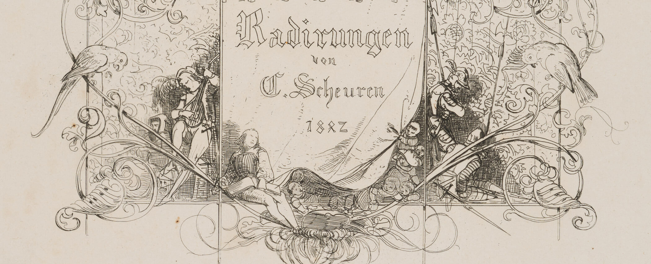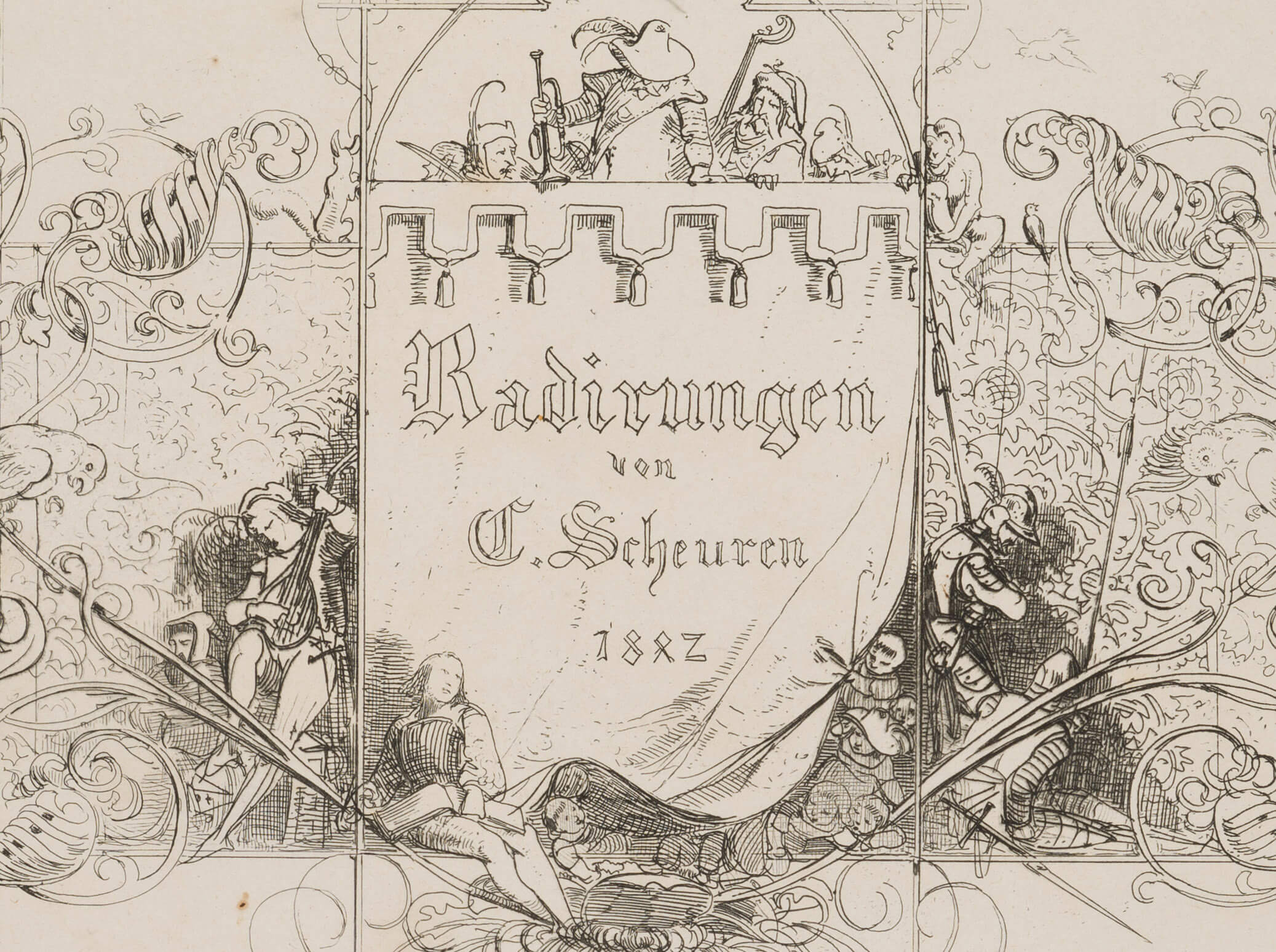 - Bezeichnung: Mittig im Druck bezeichnet: „Radirungen von C. Scheuren 1842“.