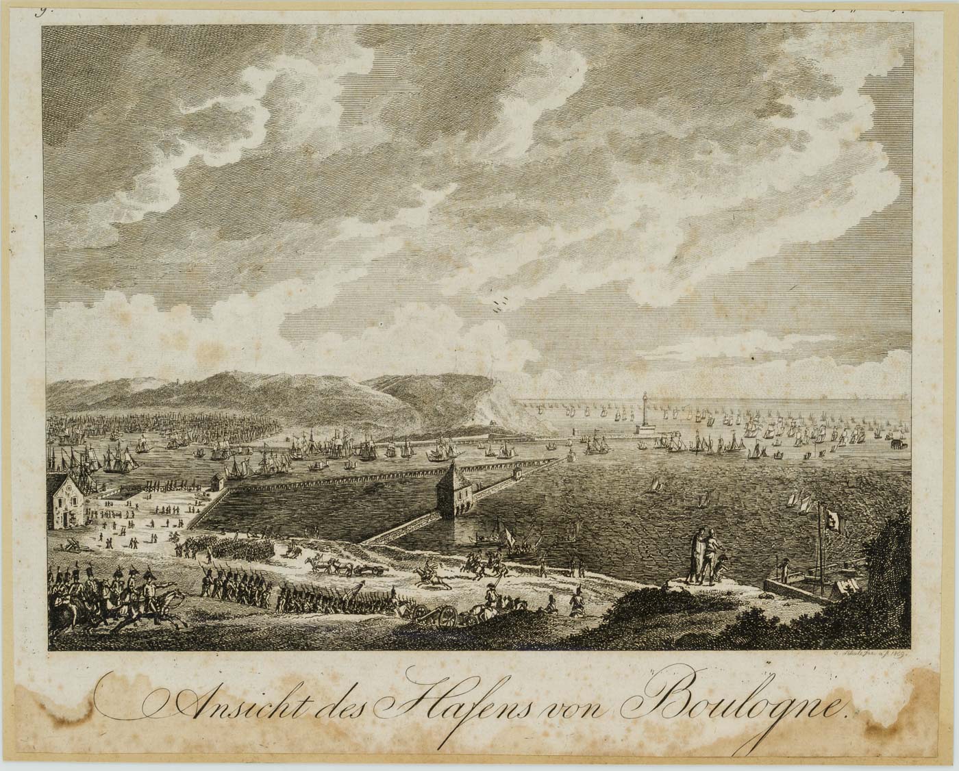 - Bezeichnung: Unten im Druck bezeichnet: “C. Schule fec. a. F. 1809”, “Ansicht des Hafens von Boulogne”.