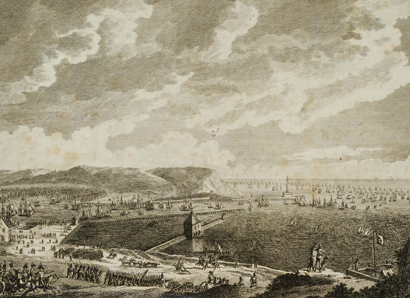 Christian Schule (1764 Copenhagen – 1816 Leipzig), View of the port of Boulogne, 1809, Copper engraving
