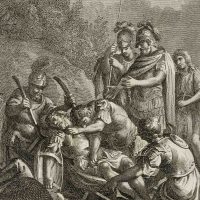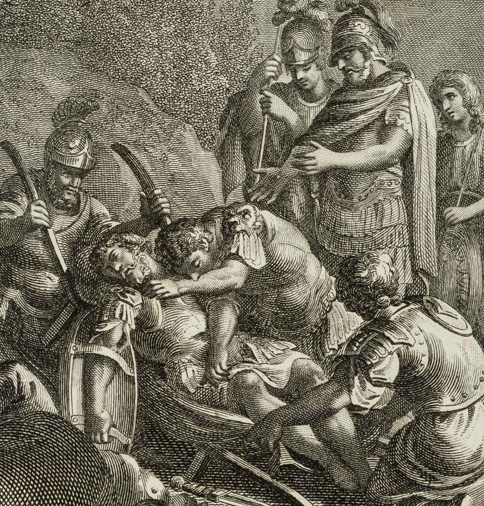 Charles Louis Schuler (um 1782 Straßburg – 1852 Lichtenthal), Bibelillustration zum Heldentod des Judas Makkabäus, um 1820, Kupferstich