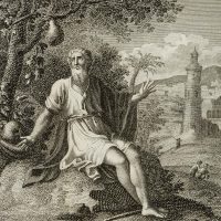 Charles Louis Schuler (around 1782 Strasbourg – 1852 Lichtenthal), Bible illustration Jonah sitting under the gourd (castor plant), c. 1820, Copper engraving