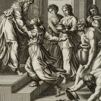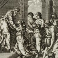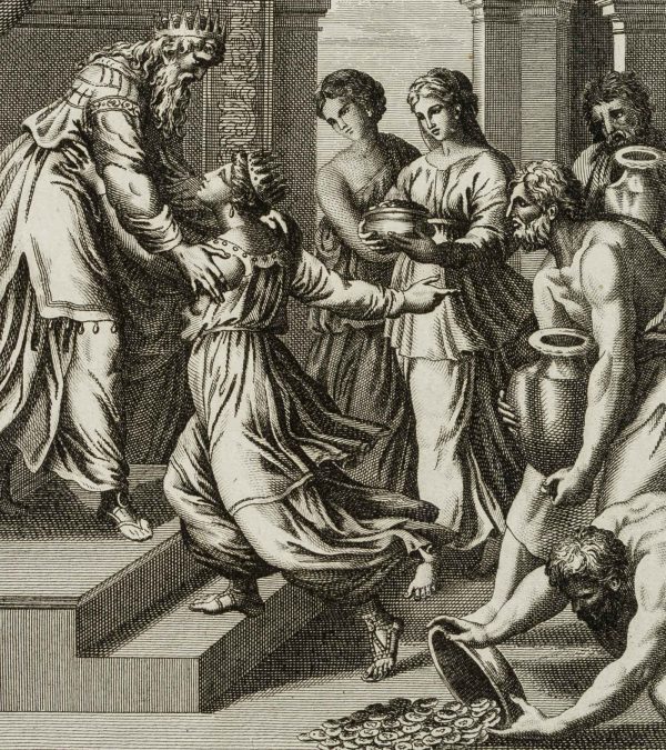 Charles Louis Schuler (around 1782 Strasbourg – 1852 Lichtenthal), Bible illustration Solomon receives the Queen of Sheba The Queen of Sheba admiringly seeks Solomon’s acquaintance, c. 1820, Copper engraving