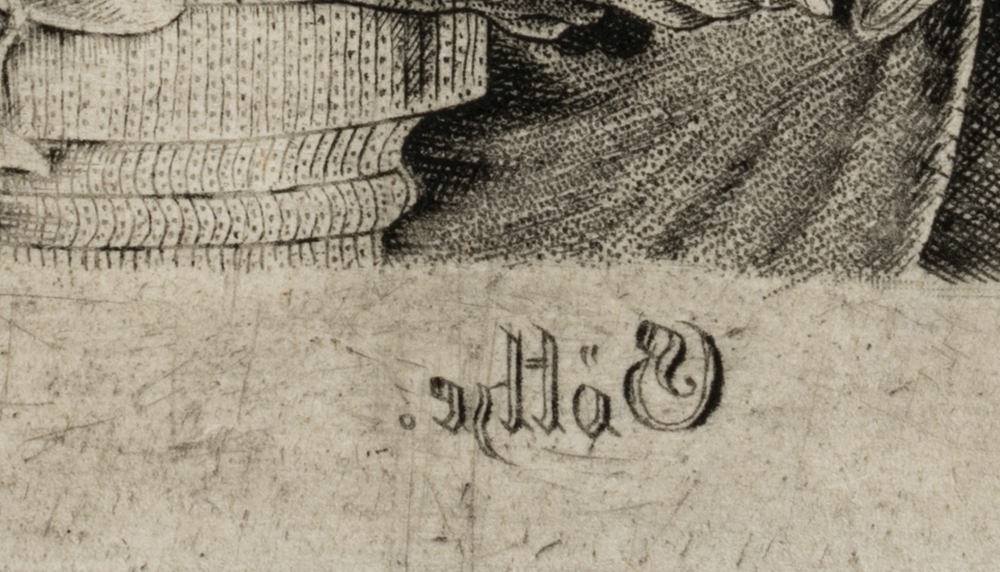 - Inscription: Inscribed in the lower centre in mirror image in the printing plate: „Göthe“.