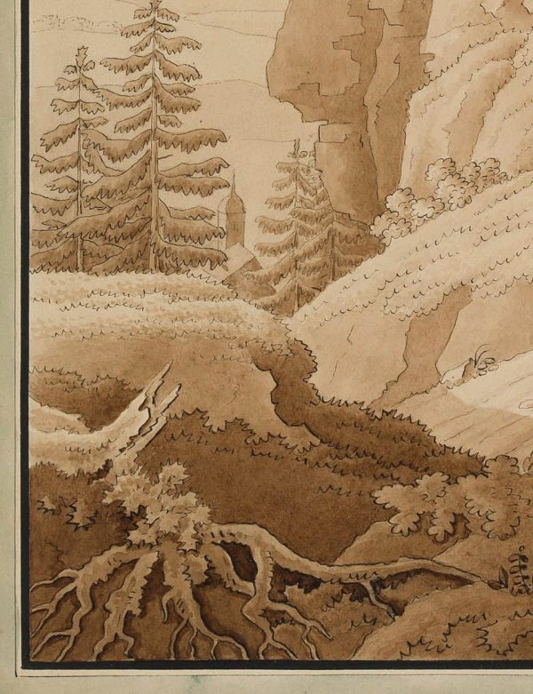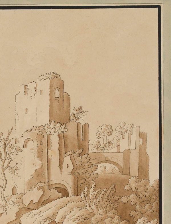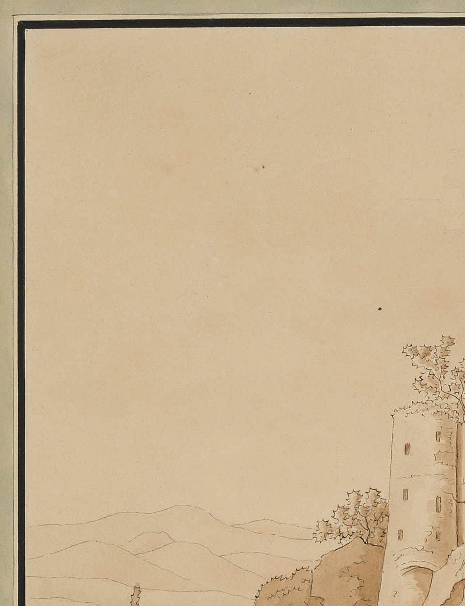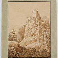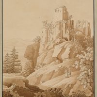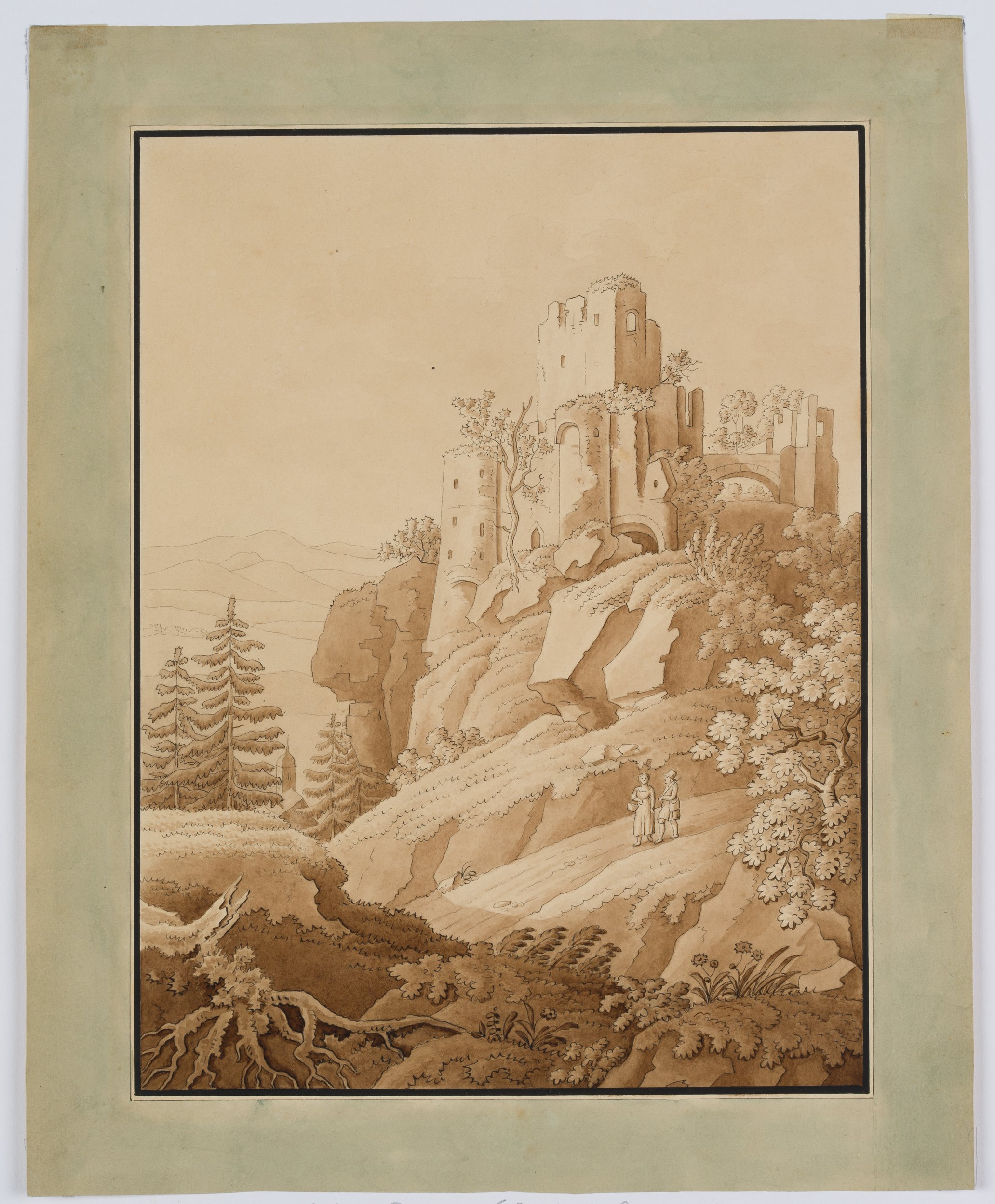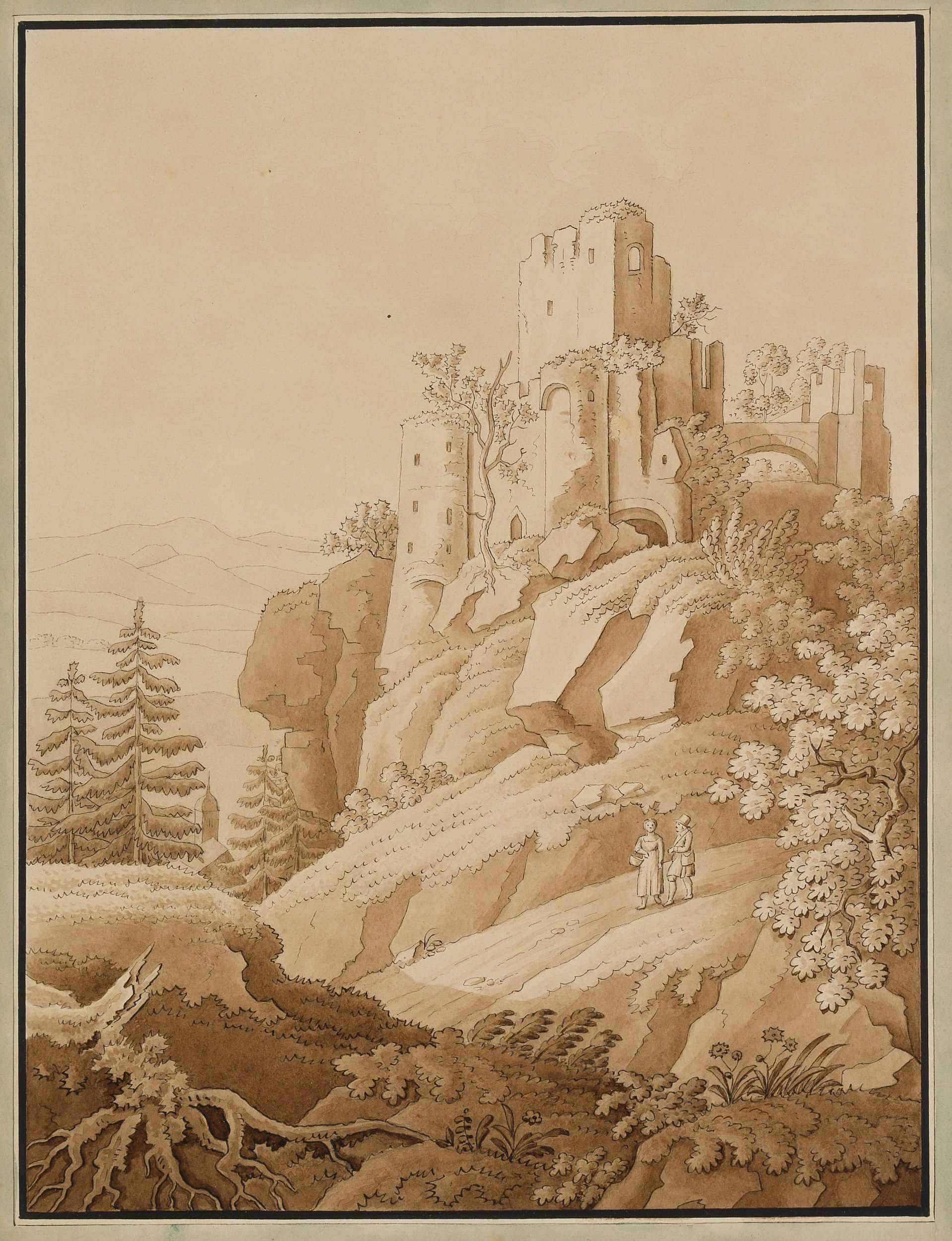 Christian Friedrich Sprinck (1769 Dresden – 1831 ibid.), Adrian Zingg circle: Ruins of Catsle Frauenstein in the Ore Mountains, c. 1790, Indian ink
