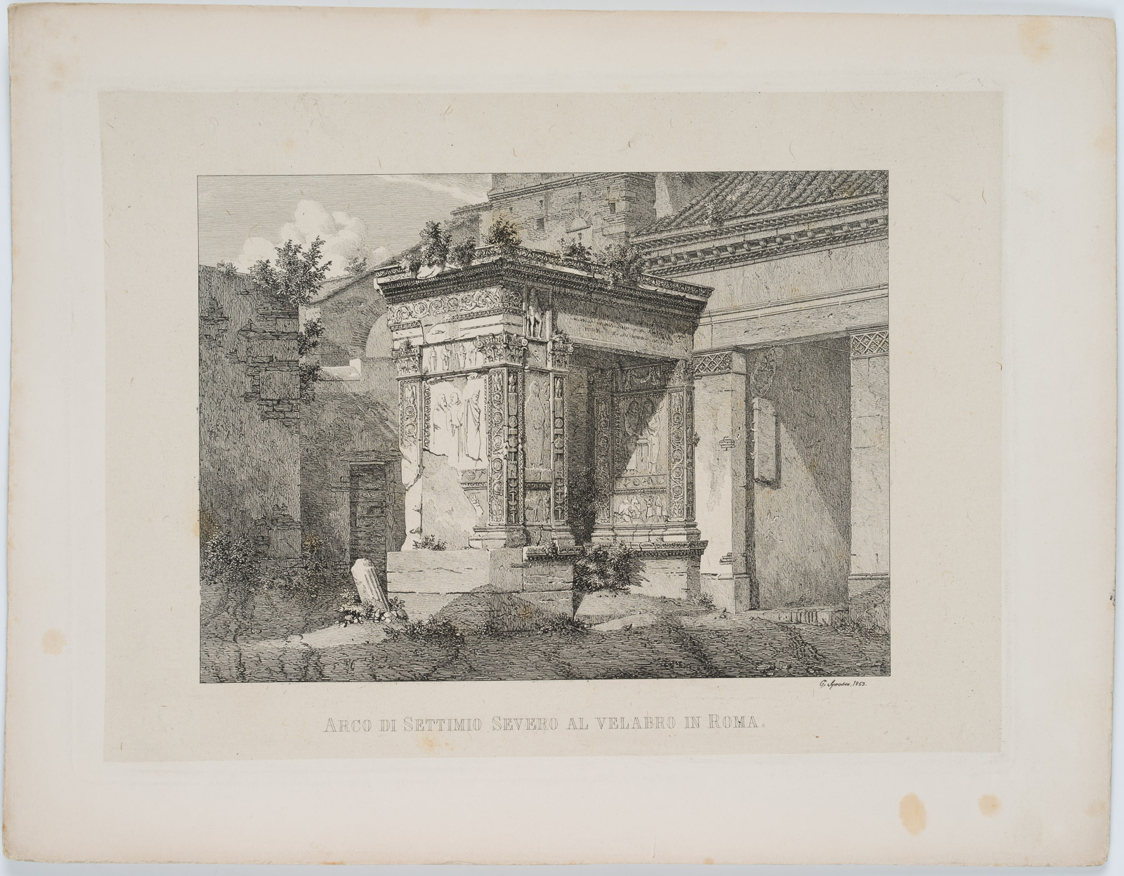 - Inscription: Signed and dated below the image on the right: “C.’. Sprosse. 1853.”; inscribed below it in the centre “Arco di Settimio Severo al Velabro in Roma.”