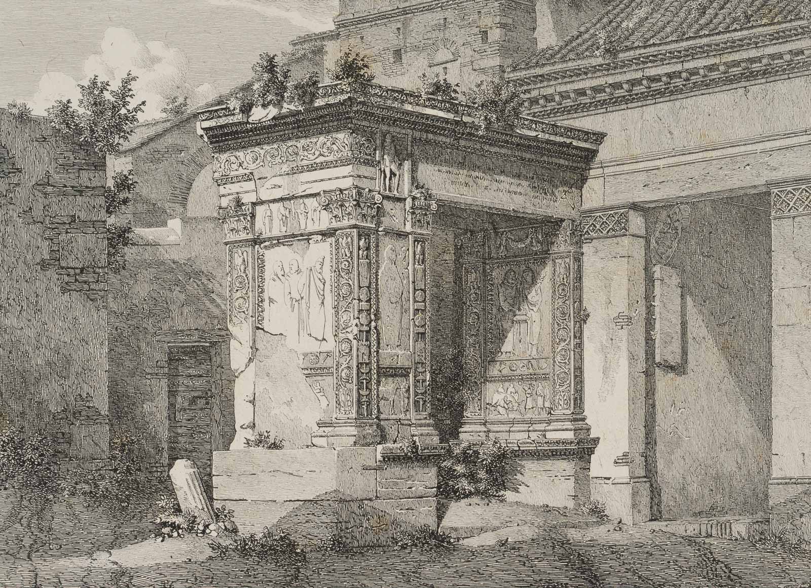 - Quelle: Georg Wigand (1808 Göttingen-1858 Leipzig) “Rom [..]”. Eine von 32 Radierungen, entstanden nach den Italienischen Reisen des deutschen Künstlers in Leipzig., Leipzig o. J. | Graphikfolge, Architektur