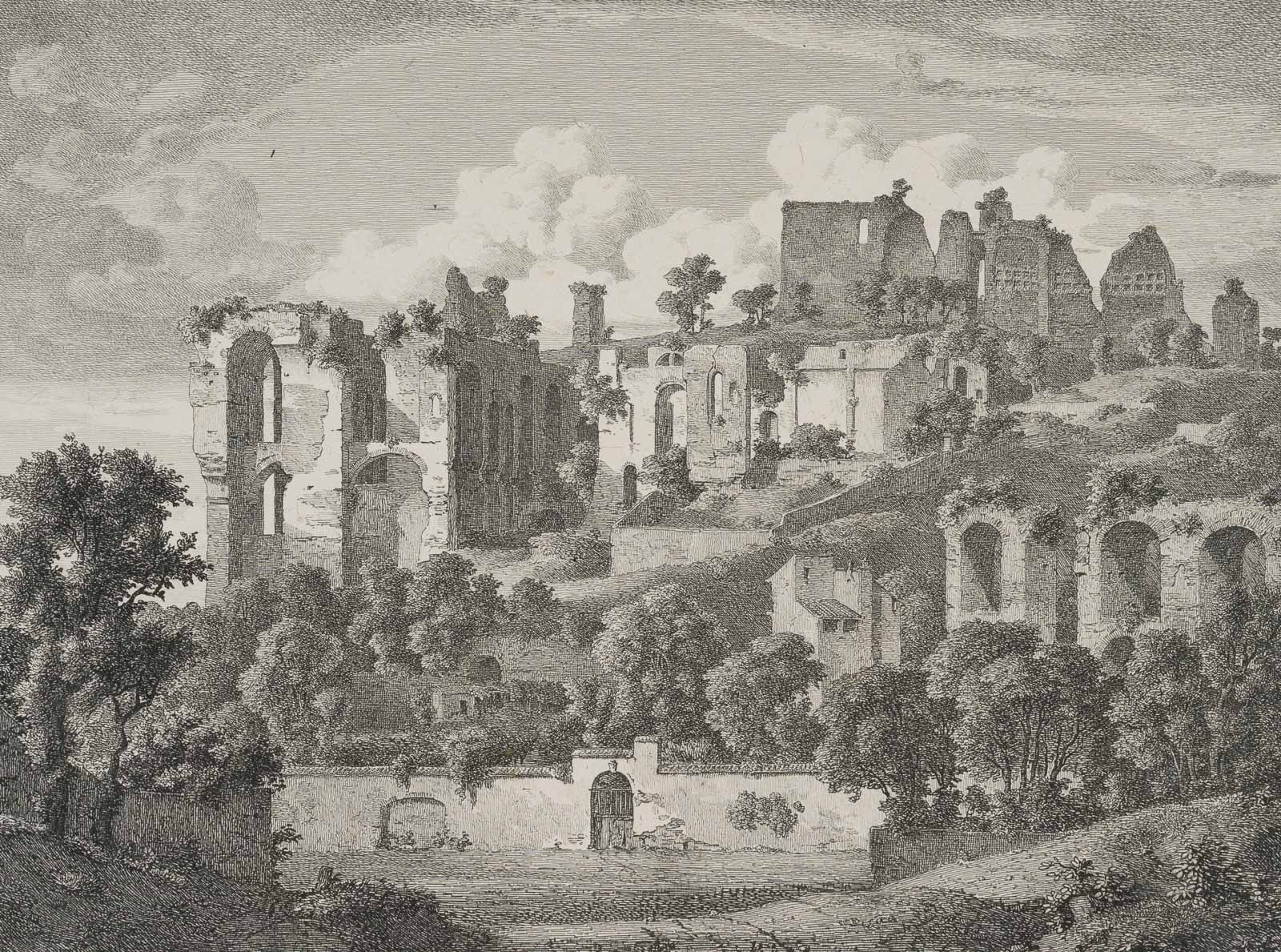 Carl Ferdinand Sprosse (1819 Leipzig – 1874 ibid.), Italy, Palatine: “View of the Imperial Palace in Rome”, “PALAZZO DE’ CESARI in Roma”, 1853, Etching