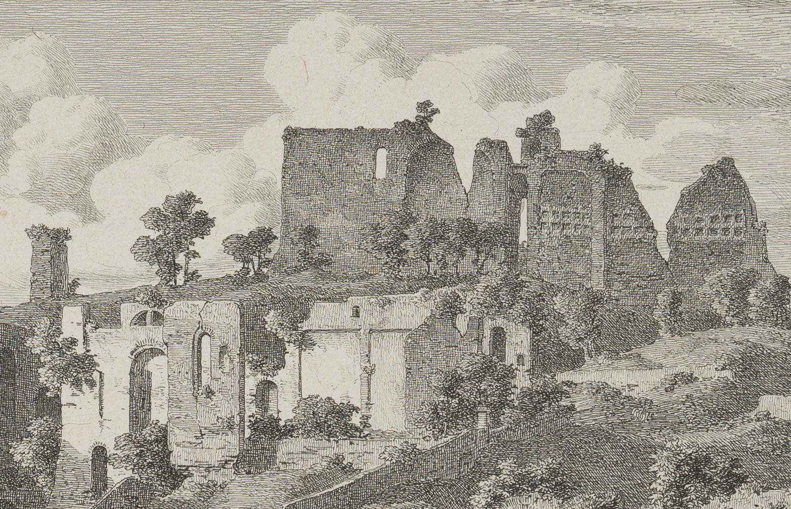 Carl Ferdinand Sprosse (1819 Leipzig – 1874 ebd.), Italien, Palatin: “Ansicht des Kaiserpalastes in Rom”, “PALAZZO DE’ CESARI in Roma”, 1853, Radierung