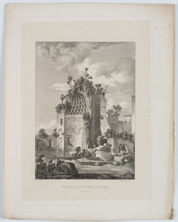 - Inscription: Signed and dated below the image on the right: “C.’. Sprosse. 1853.”; inscribed below it in the centre “Tempio di Venere e Roma in Roma”.
