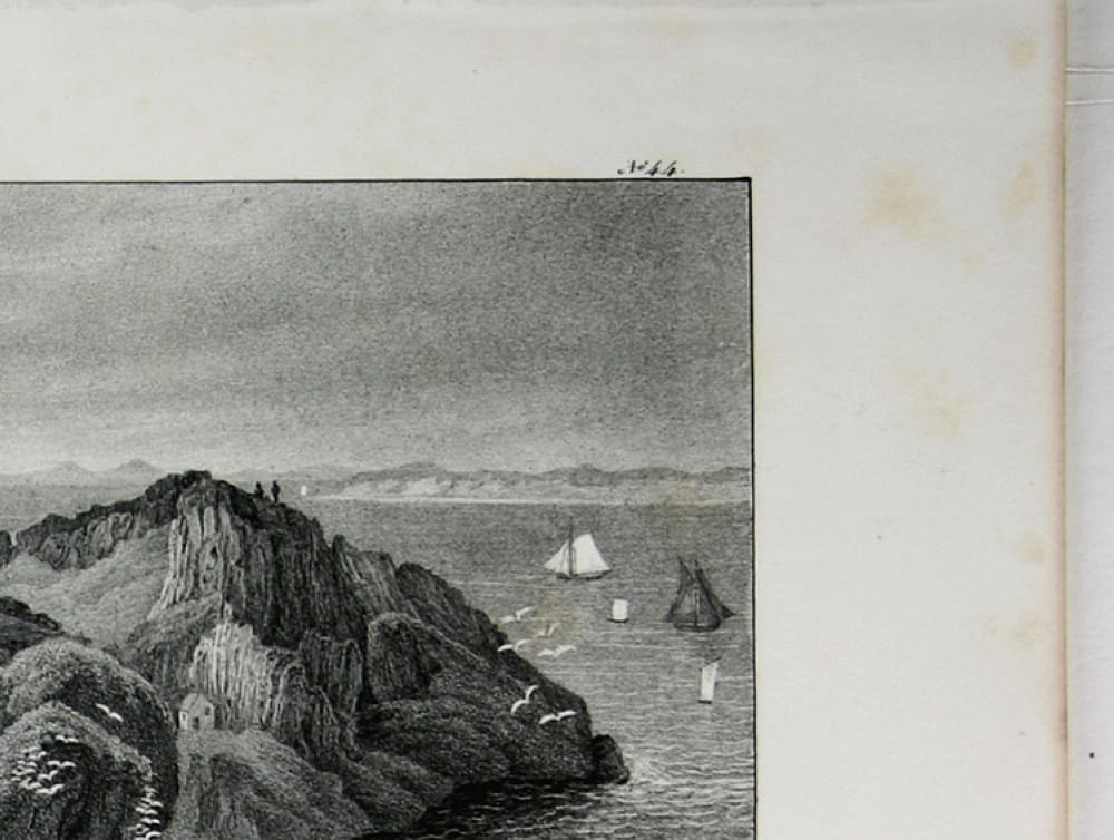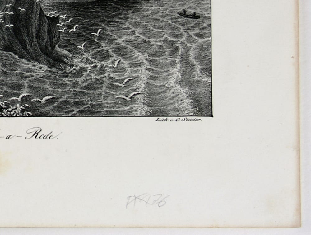- Beschreibung: C. Studer, Carrick-a-Rede, Lithographie, um 1880. Beschreibung:Lithographie von C. Studer, bezeichnet oben rechts: “N° 44” darunter: “Lith. v. C. Studer Carrick-a-Rede”. Sehr schöne Ansicht der imposanten, nordirischen Felseninsel Carrick-a-Rede.