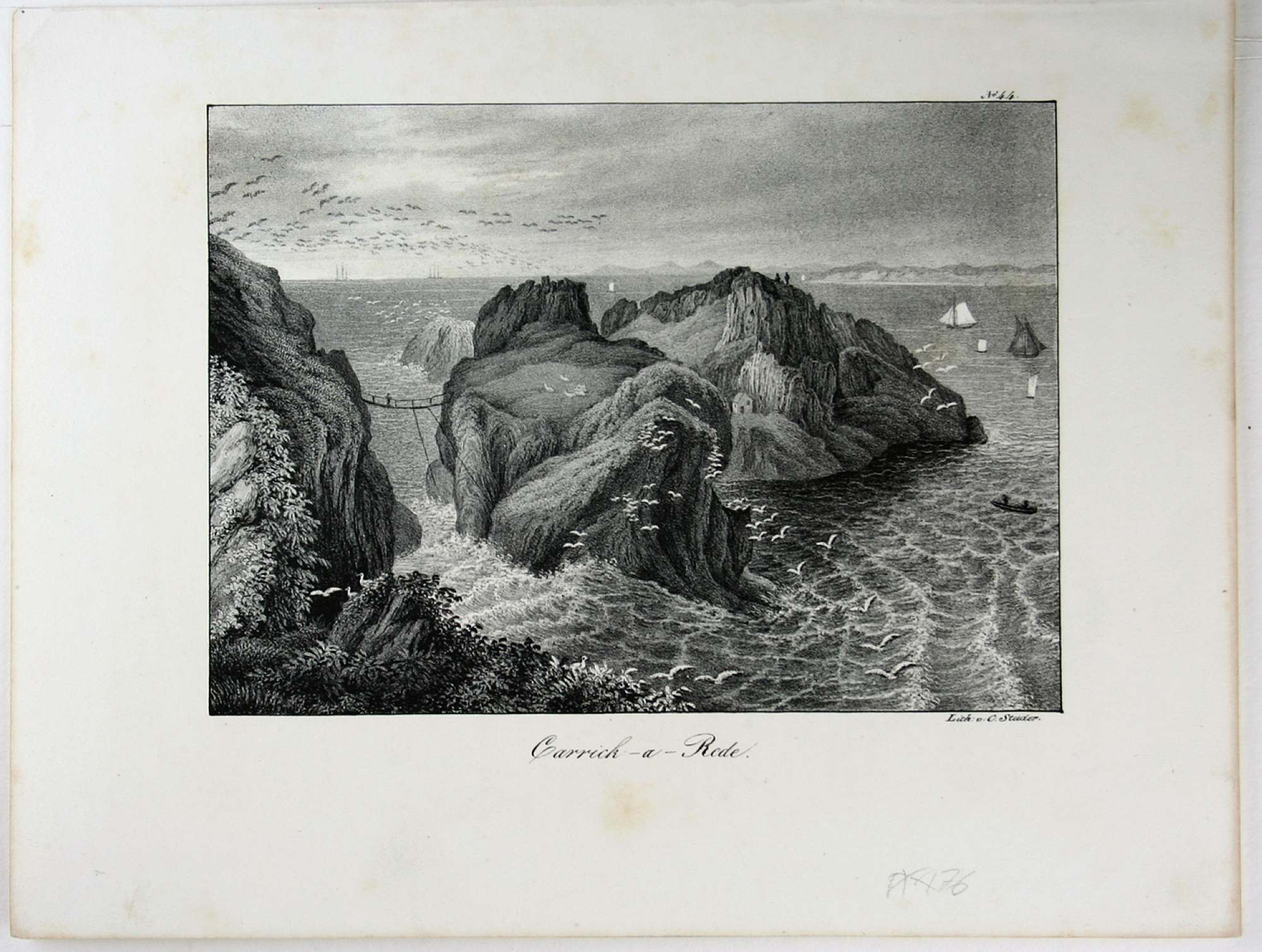 - Description: C. Studer, Carrick-a-Rede, lithograph, c. 1880. Description:Lithograph by C. Studer, inscribed upper right: “N 44” below: “Lith. v. C. Studer Carrick-a-Rede”. Very nice view of the imposing, Northern Irish rocky island of Carrick-a-Rede.