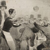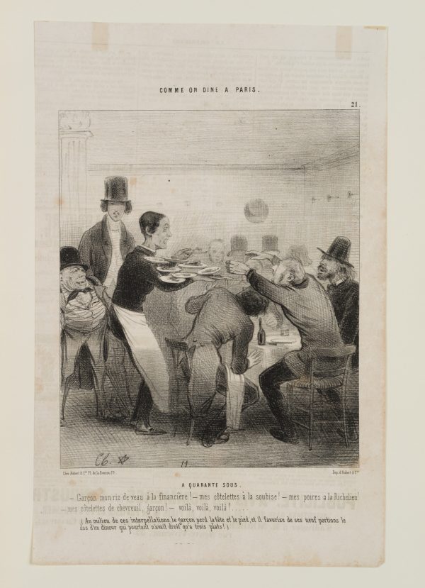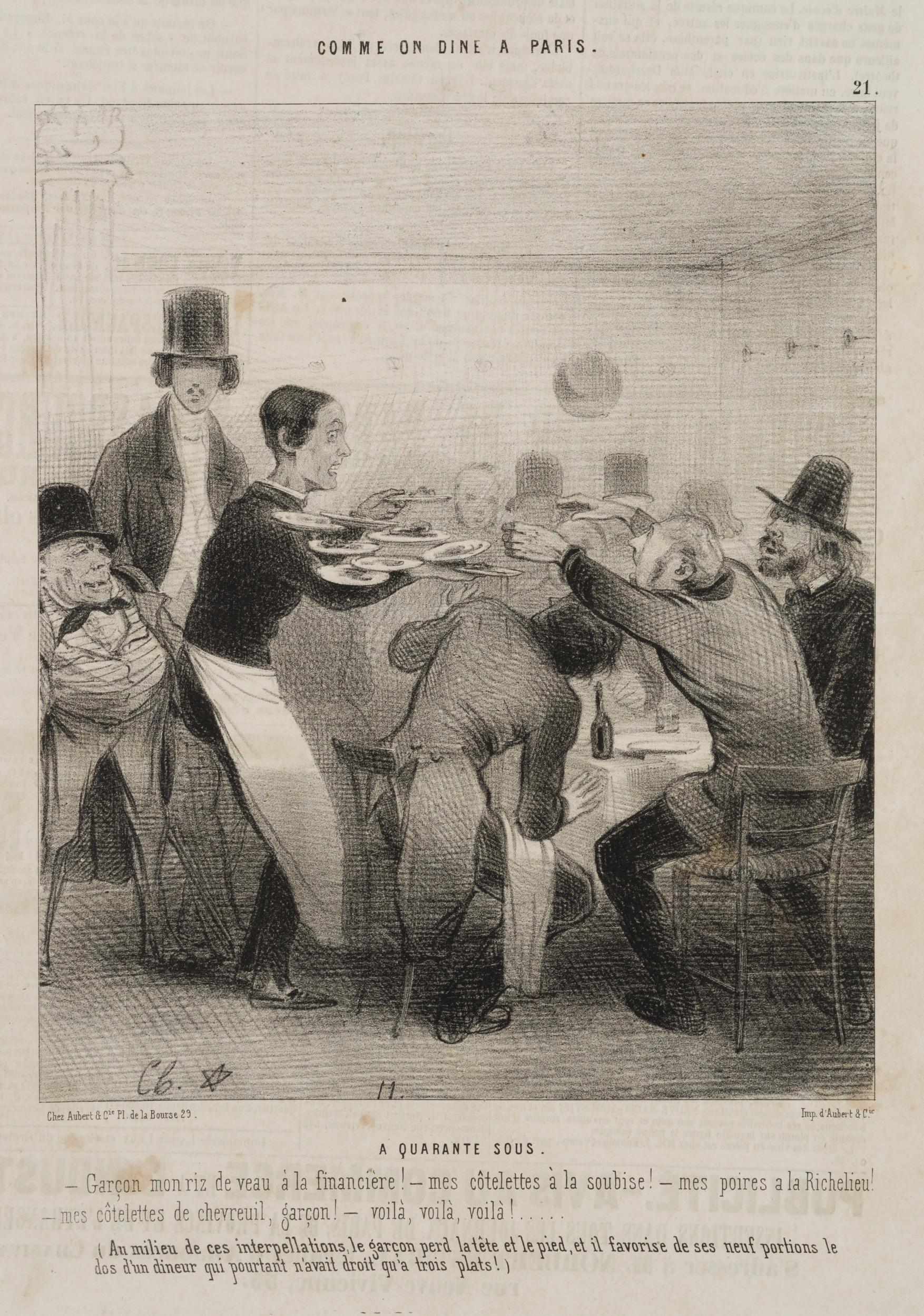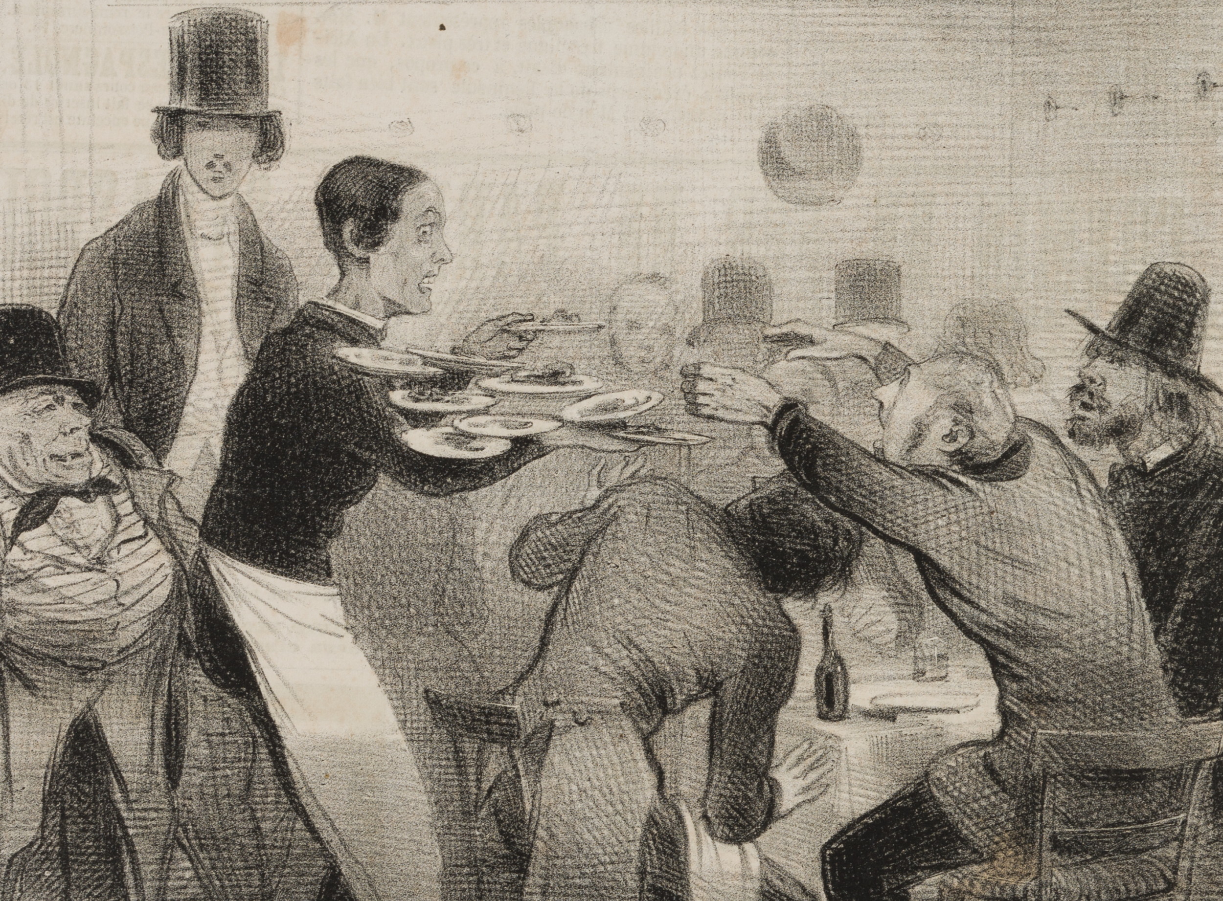 Charles-Joseph Traviès (1804 – 1859 ), Karikatur. Überforderter Kellner, , Lithographie