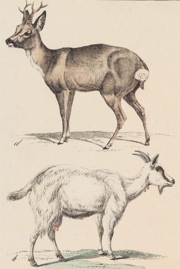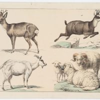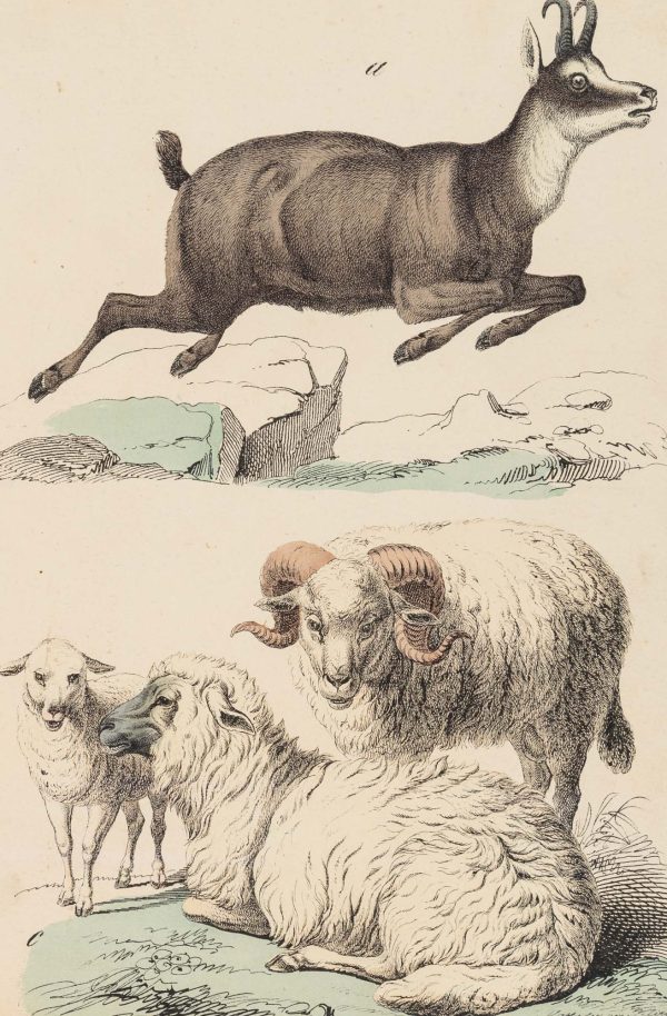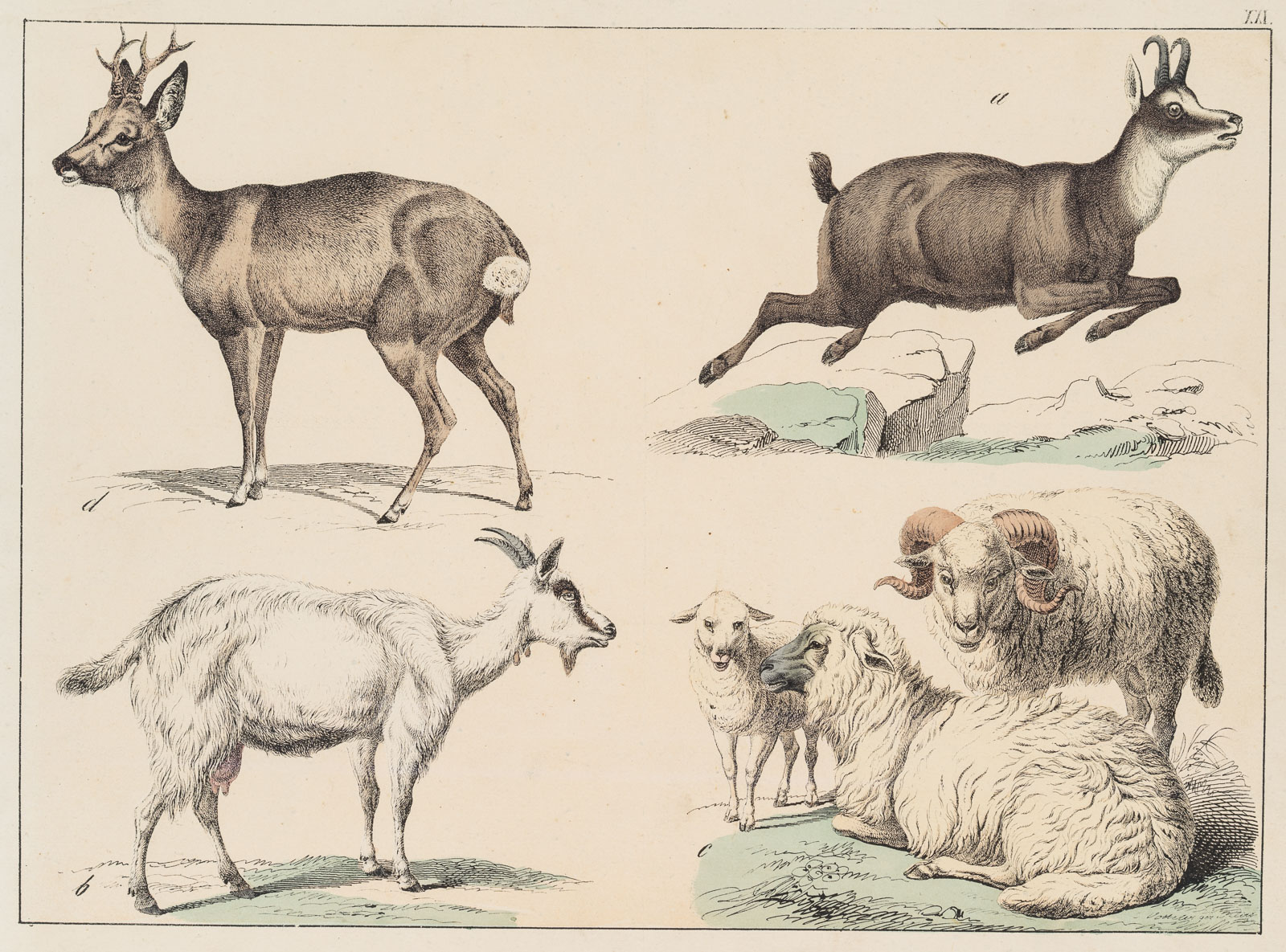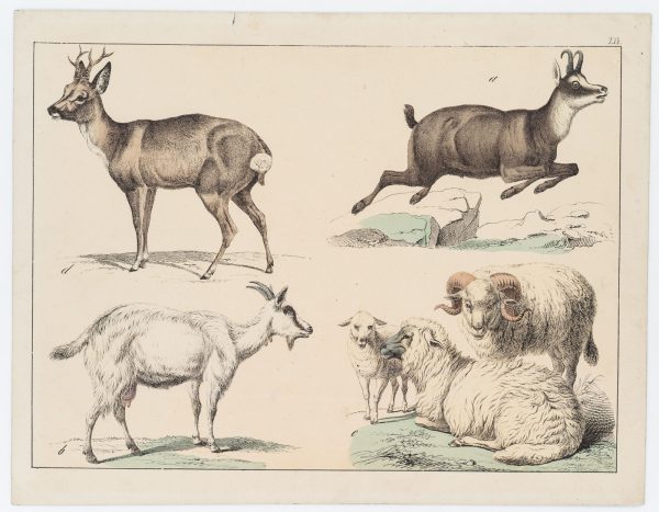 Christian Votteler (around 1871 – around 1914 ), Animal representation of various goat species: sheep, ram, mountain goat; deer; from an animal encyclopaedia, 1870, Lithography