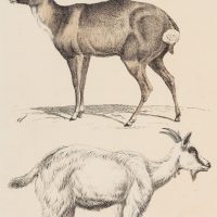 Christian Votteler (um 1871 – um 1914 ), Tierdarstellung verschiedener Ziegenarten: Schafe, Widder, Bergziege; Hirsch; aus einer Tierenzyklopädie, 1870, Lithographie