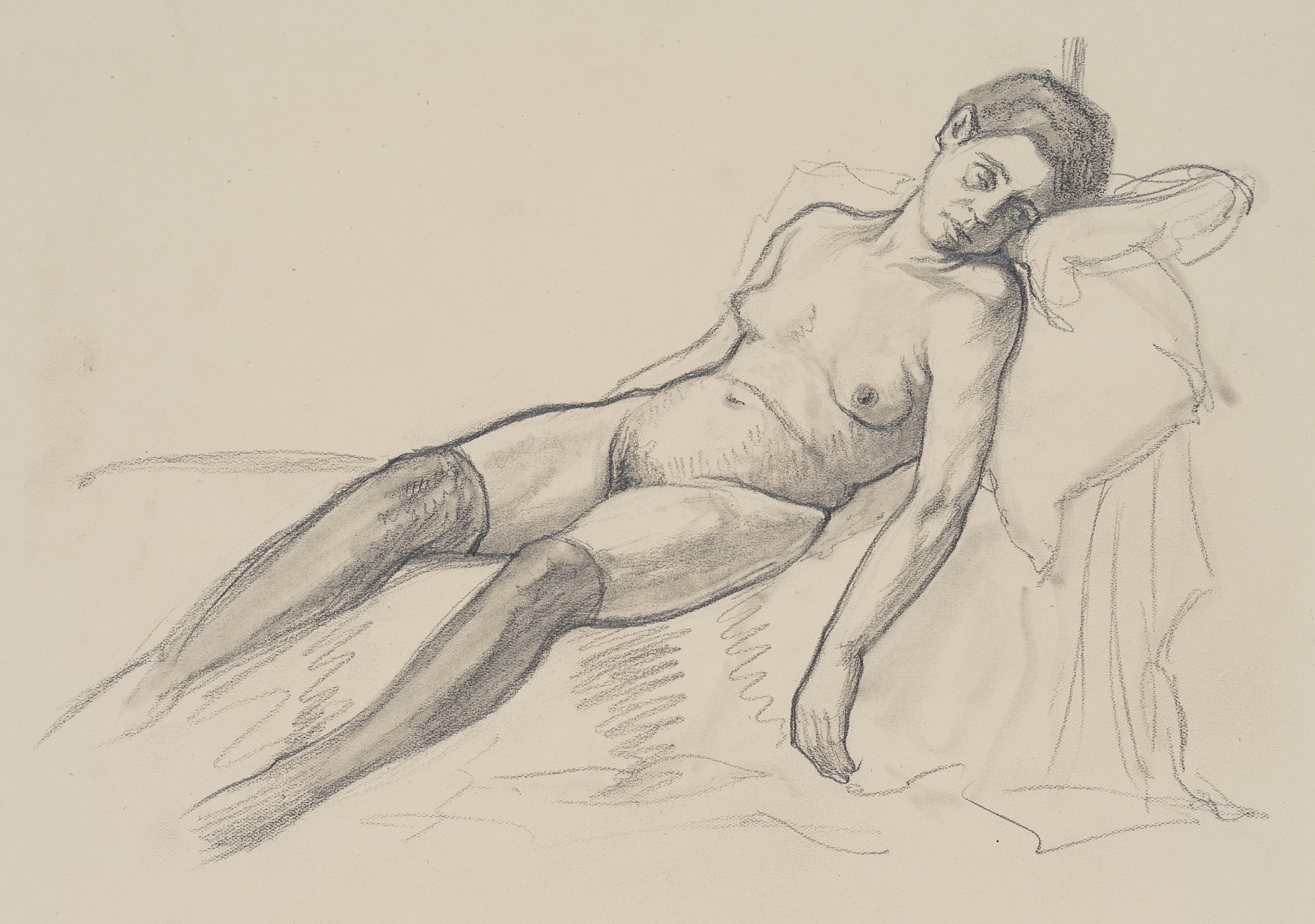 Carl August Walther (1880 Leipzig – 1956 Dresden), Campers, Female Nude, c. 1910, Charcoal