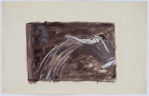 Carl August Walther (1880 Leipzig – 1956 Dresden), Jumping, Female Nude, c. 1910, Pen drawing