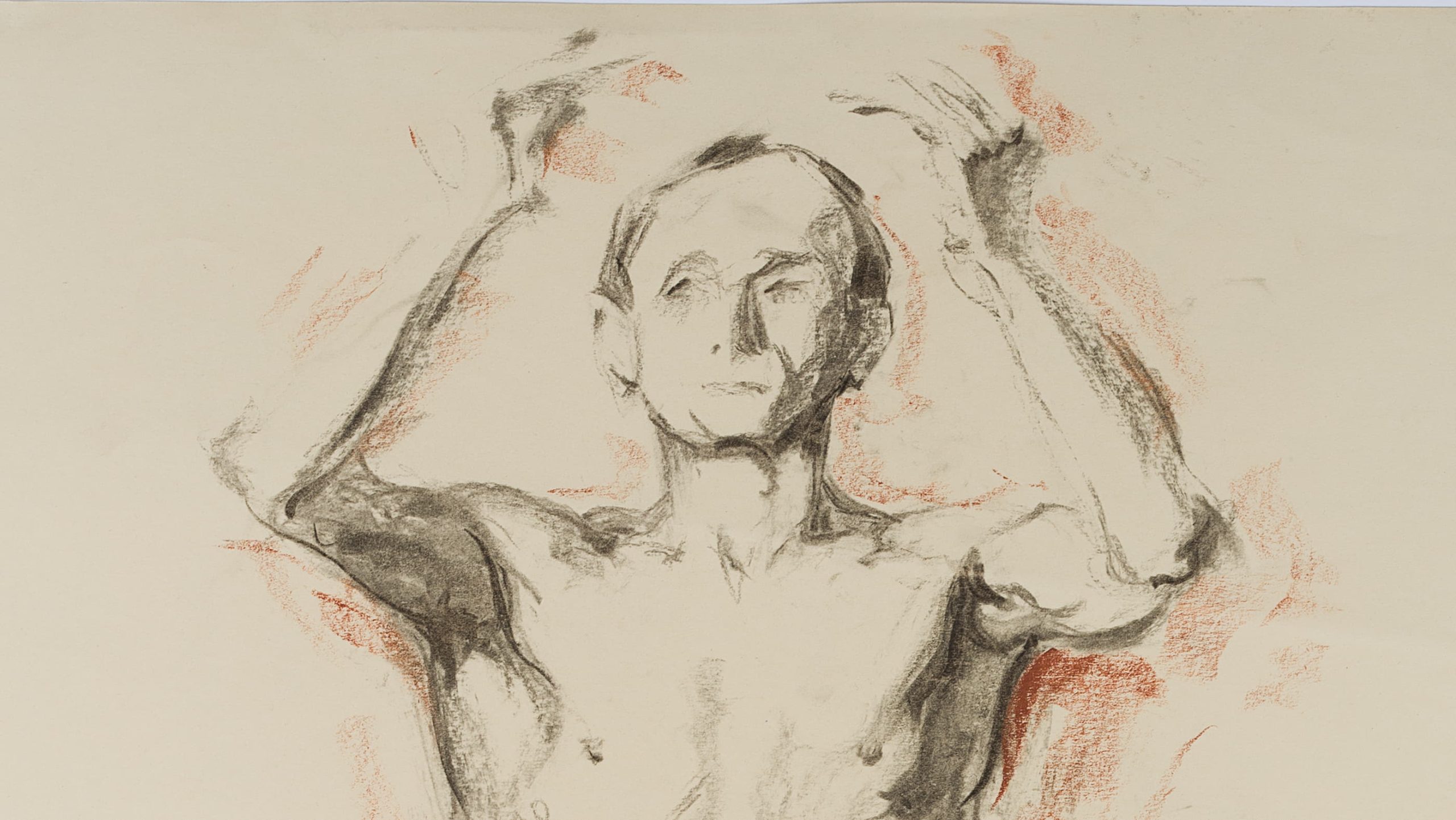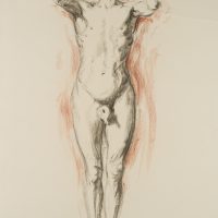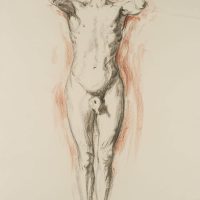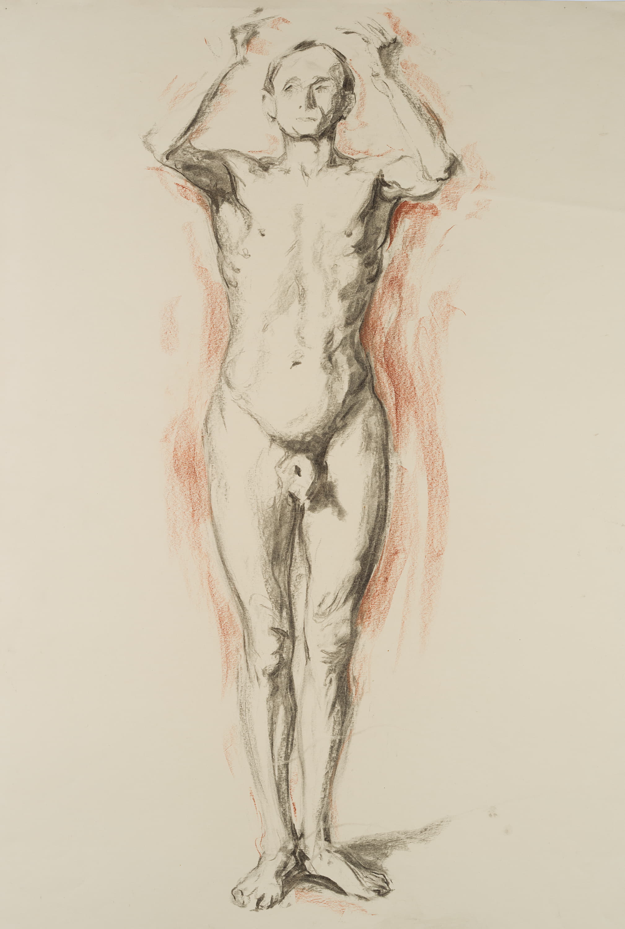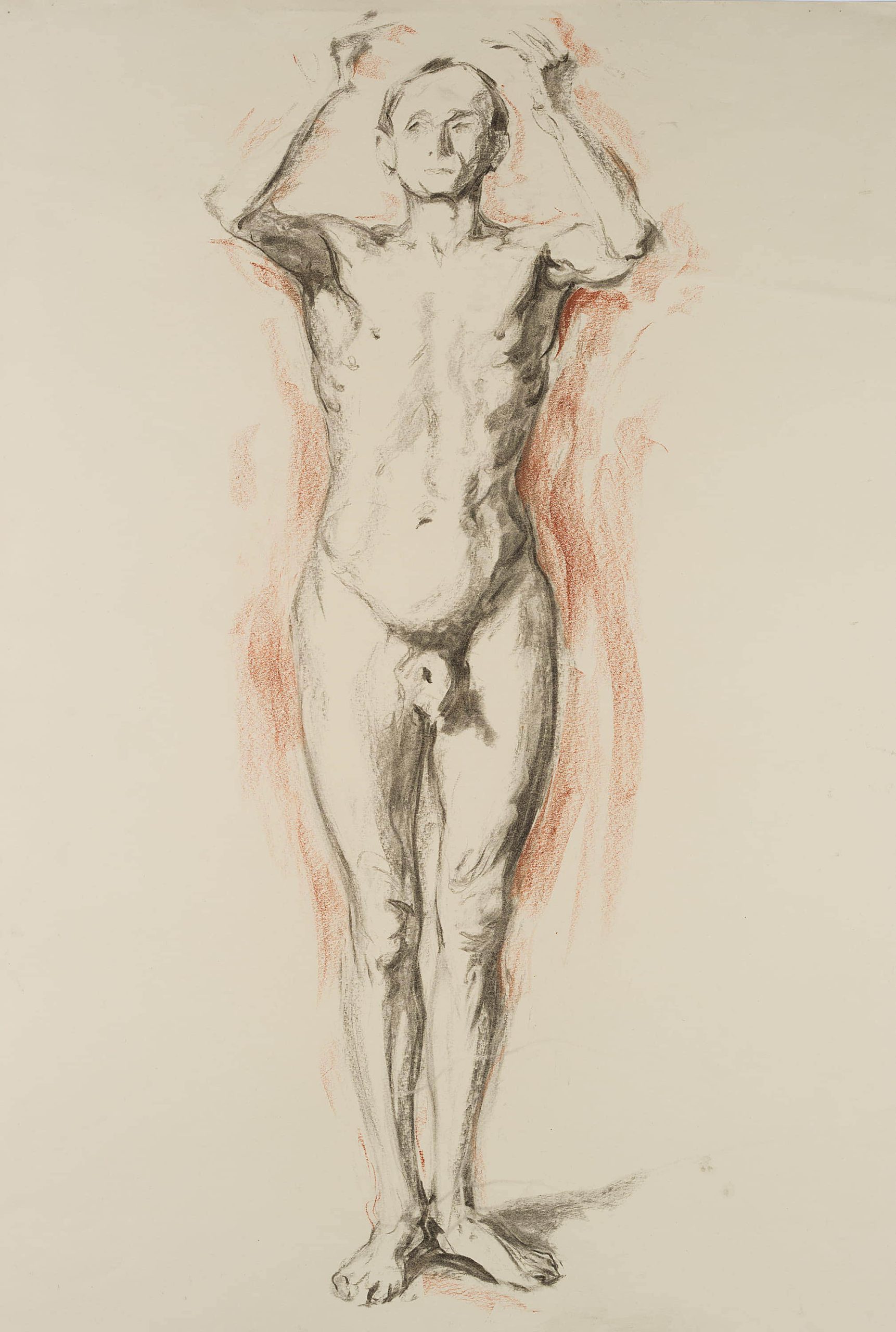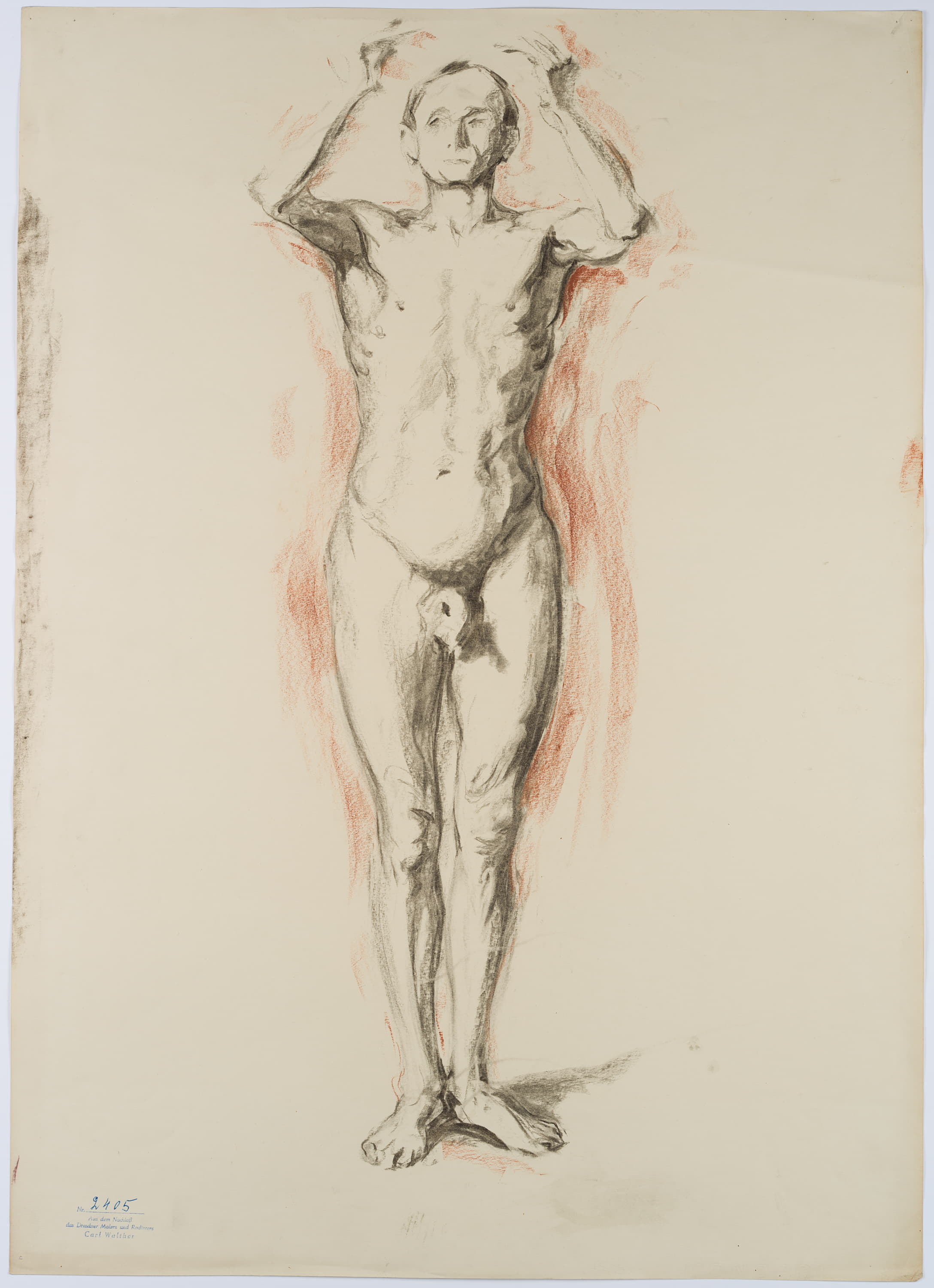 Carl August Walther (1880 Leipzig – 1956 Dresden), Standing male nude, 20th century, Chalk