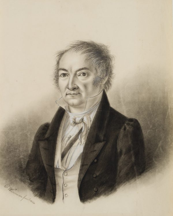 - Description: Skilfully executed portrait drawing in kohel with white heightening. Literarily tangible is a Jacob Waltmann, who was born in Vienna in 1802 and died there in 1871, but mainly painted landscapes. Whether this is the same artist must remain open for the time being. | Watermark: “J Whatmann….”