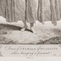 - Inscription: Lower middle signed in the printing plate: “Warren sc.”. At the lower part inscribed in the printing plate: “Dress of a Female of Otaheite when bringing a present. Cook”.