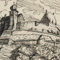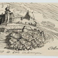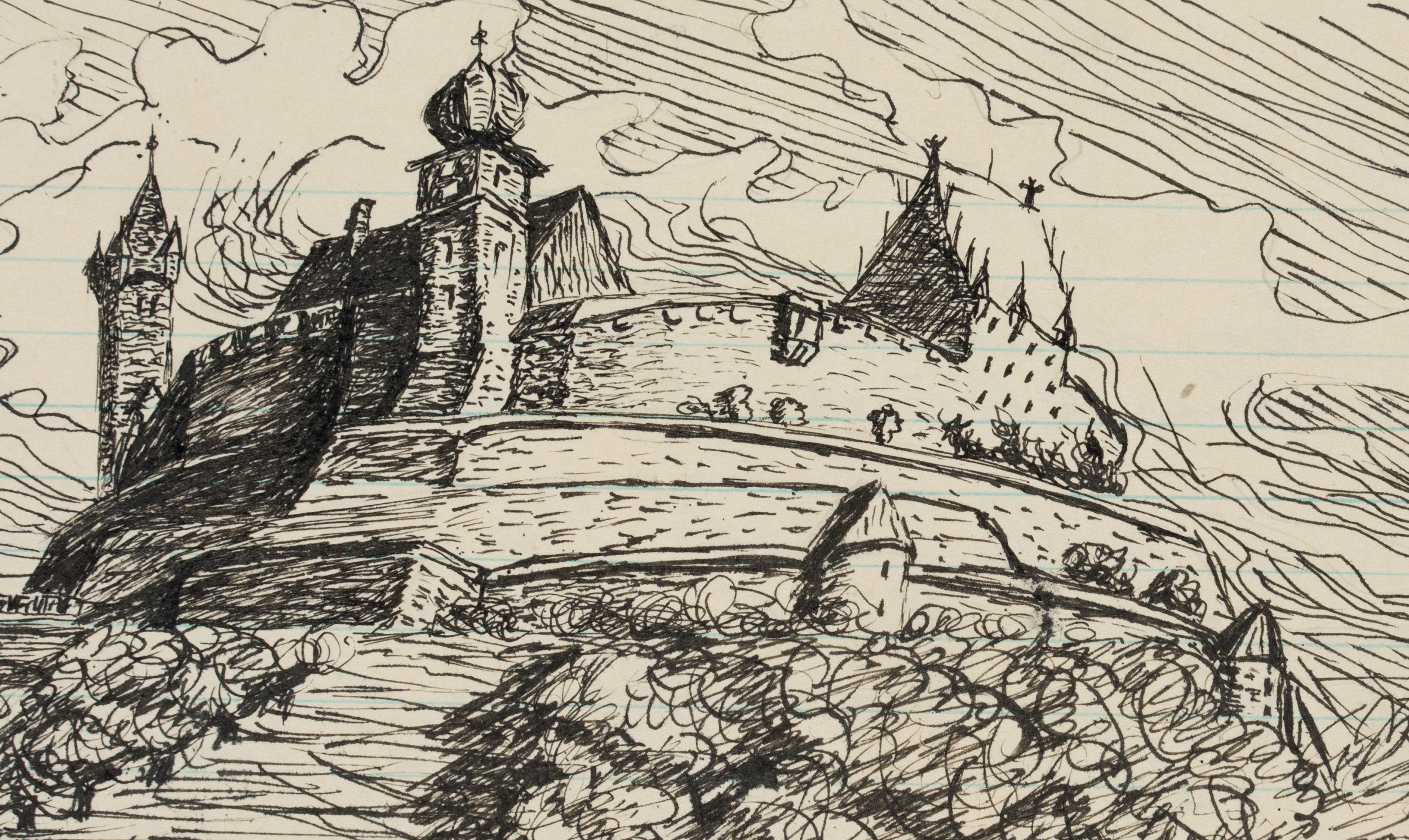 Carlo Wedemeyer (20th century), View of the Veste Coburg, 1953, Pen drawing