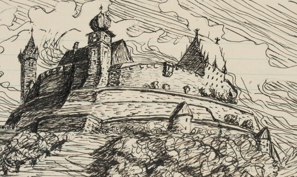 - Description: Vivid sketch of the Veste Coburg on the castle hill.