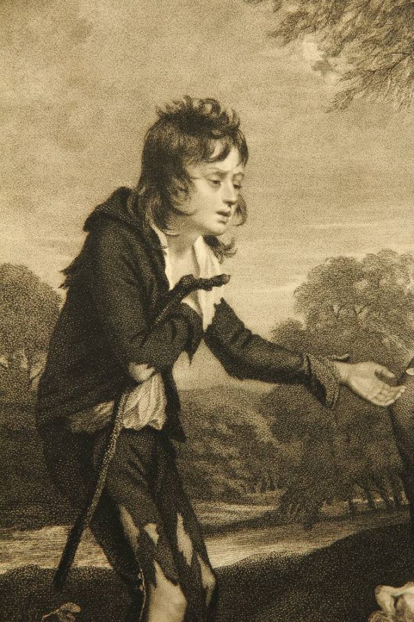 Charles Wilkin (um 1750 London – 1814 ebd.), Wohlhabende Kinder helfen Bettelknaben, 19. Jahrhundert, Radierung