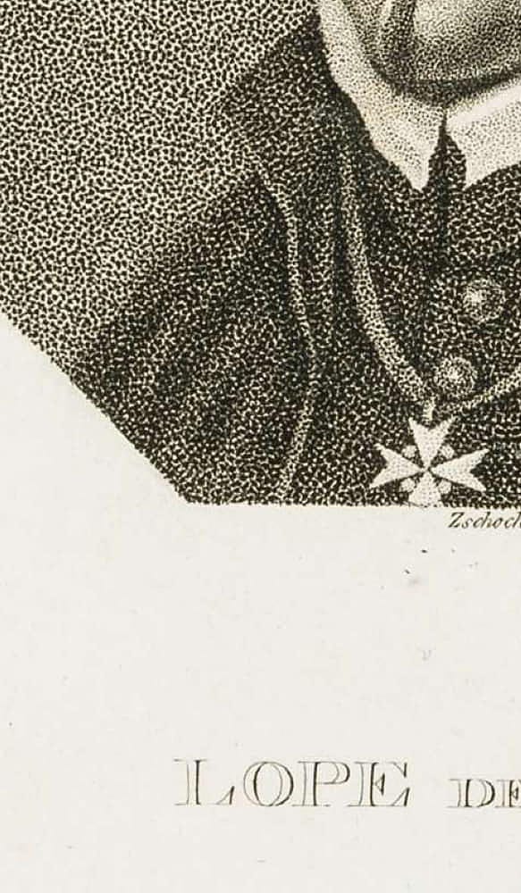 • Inscription: Signed “Zschoch sc.” below the picture. Inscribed below with the sitter’s name “LOPE DE VEGA”.