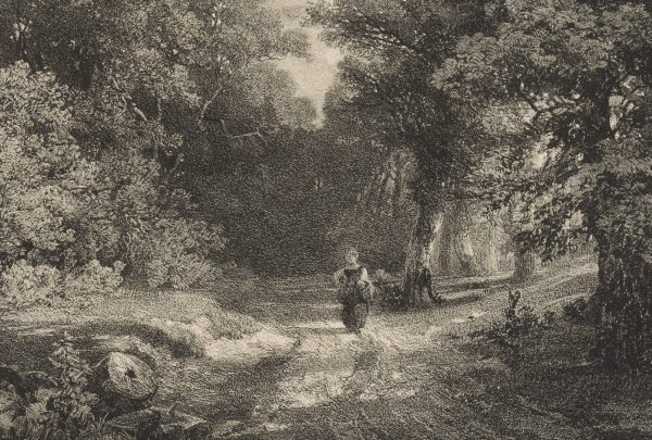 - Schlagworte: Waldweg, Wald, Spaziergang, Sonnenlicht, Sommer, Bäume, Landschaft, Natur, Frankreich, Romantik, 1800-1849